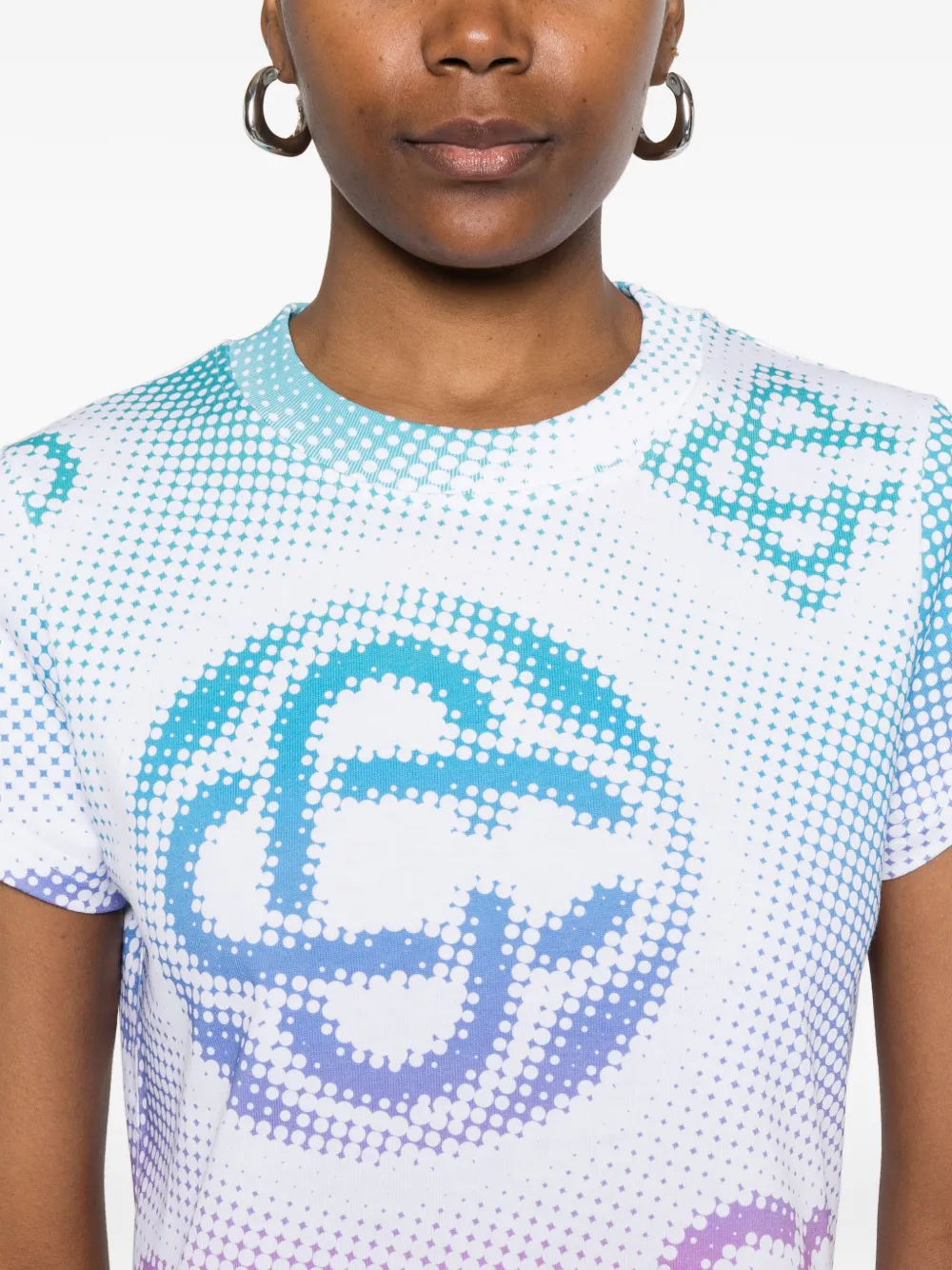 Белая многоцветная футболка с круглым вырезом и короткими рукавами с принтом