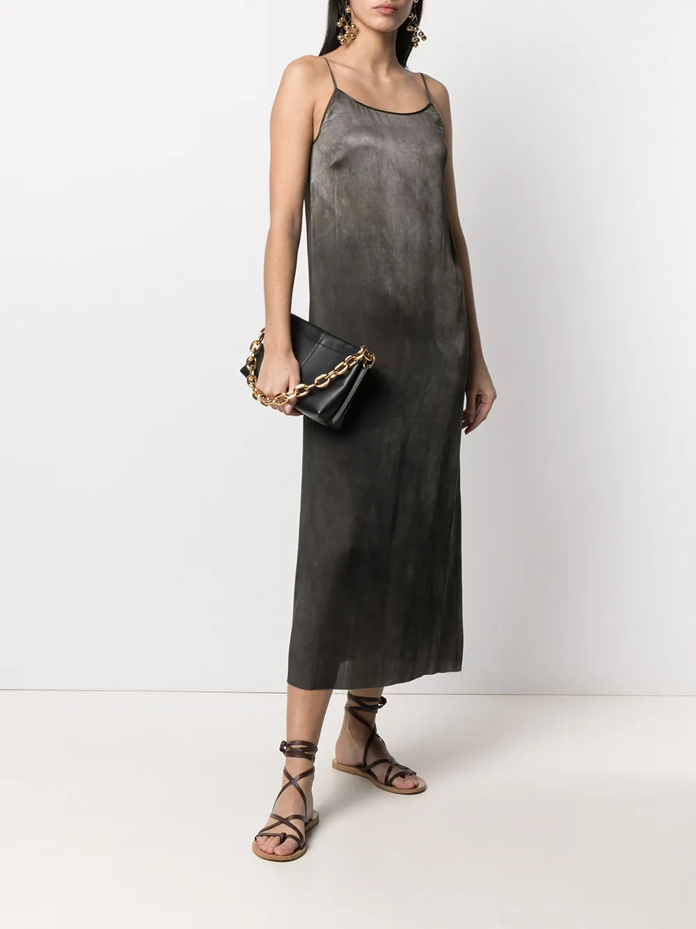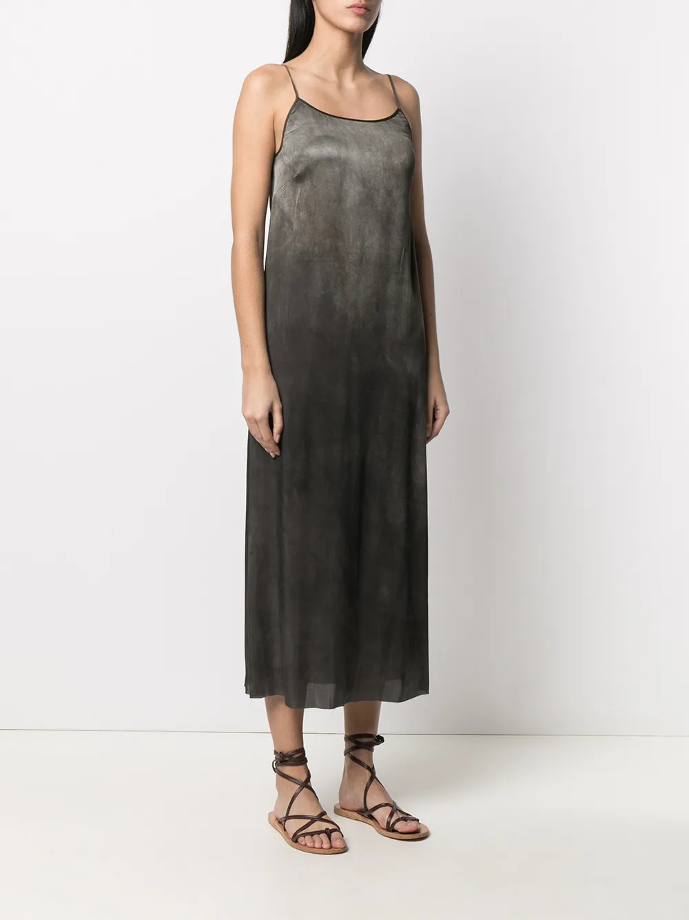 Градиентный эффект, круглый вырез, без рукавов и длина миди. Цвет: черный.