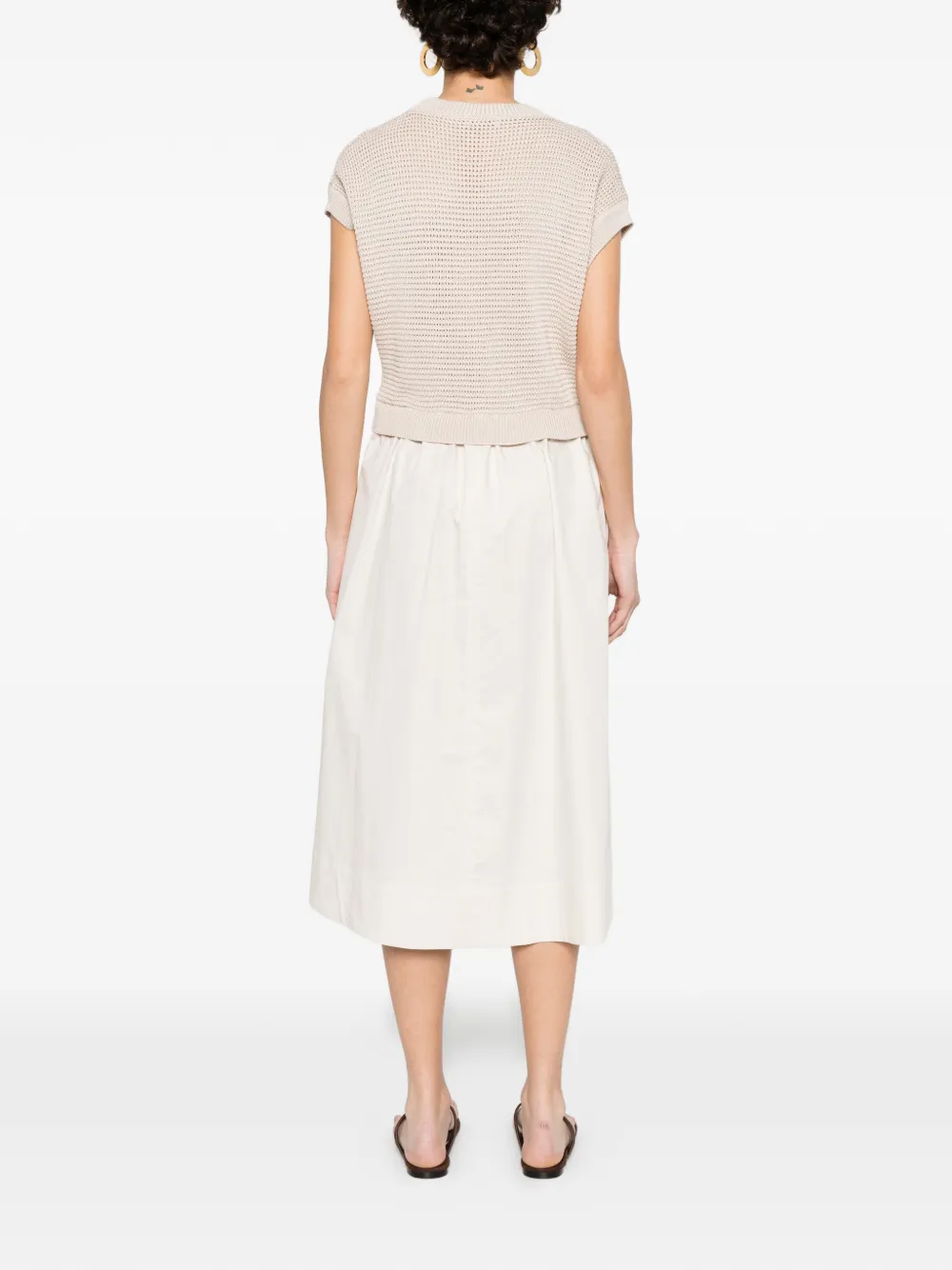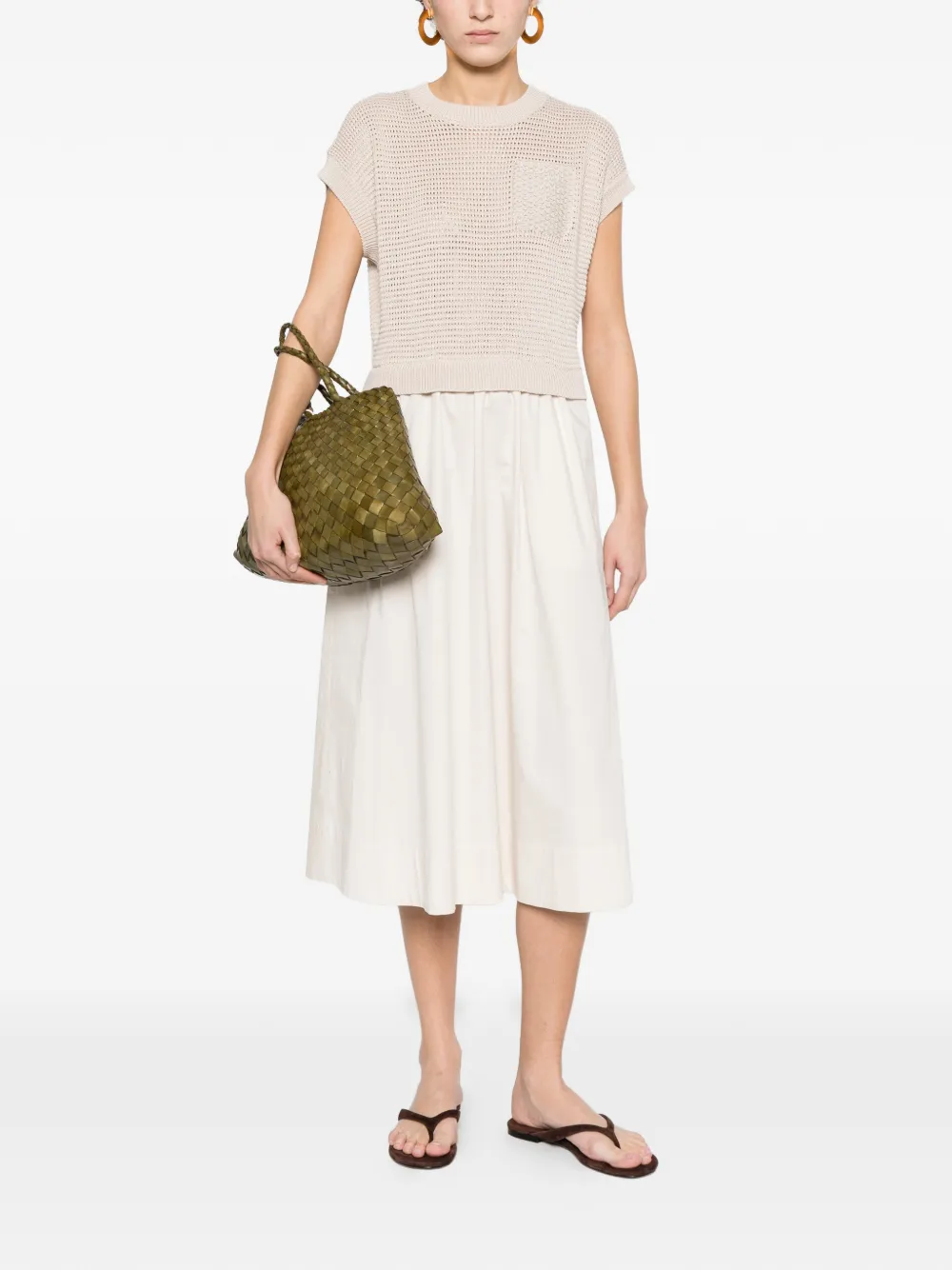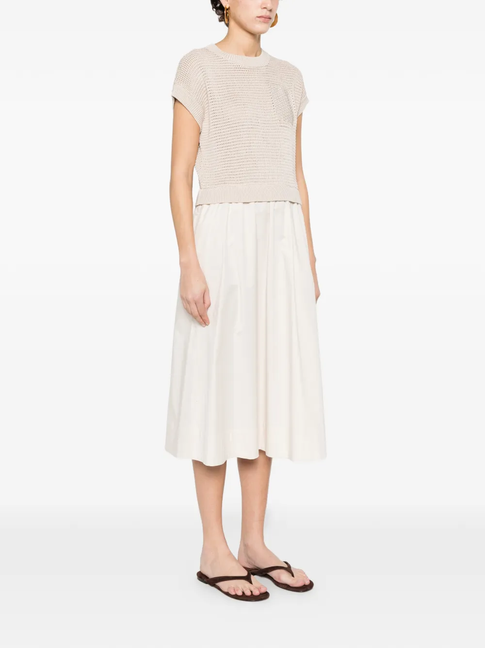 Нейтральный трикотажный топ с нагрудным карманом, пышная юбка А-силуэта