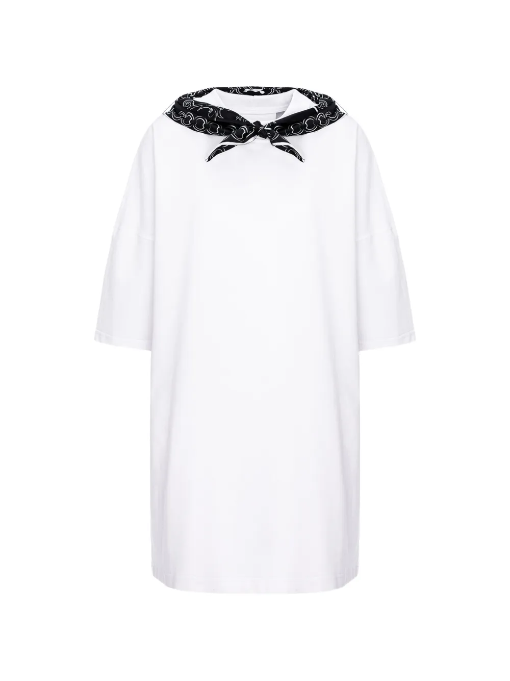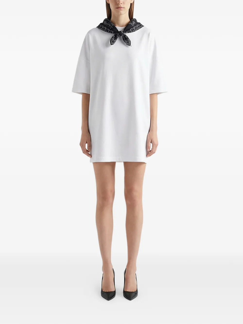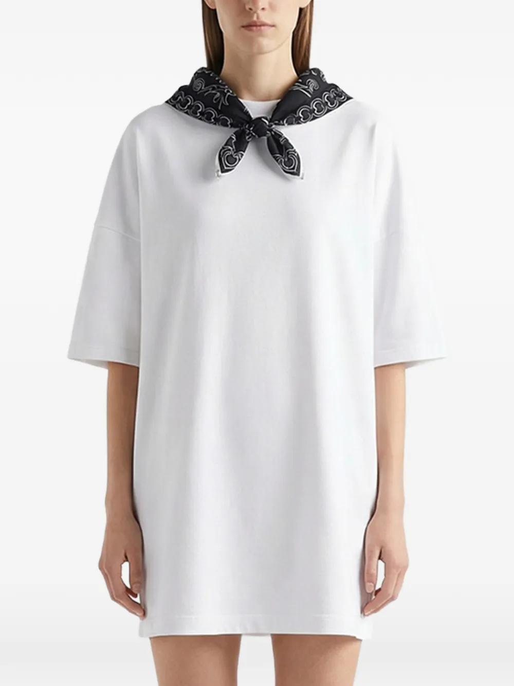 Белое платье-футболка с короткими рукавами и деталями в виде шарфа