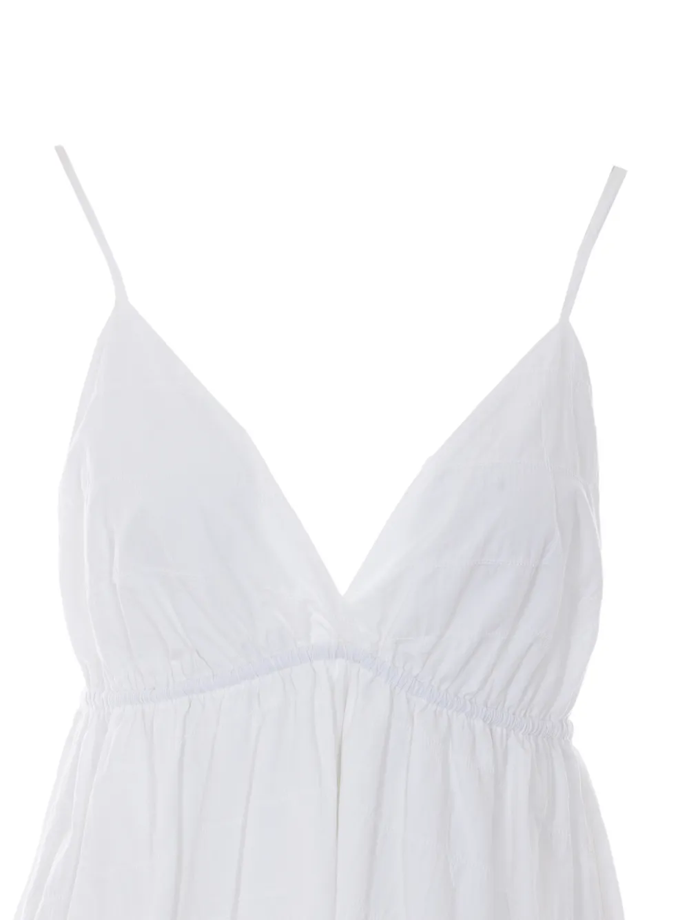 Белый топ с тонкими бретелями, V-образным вырезом и драпировкой