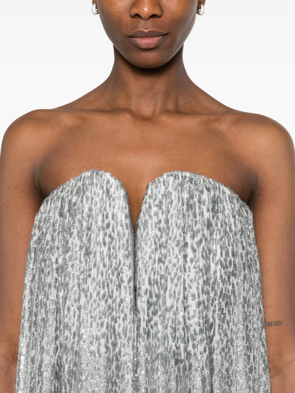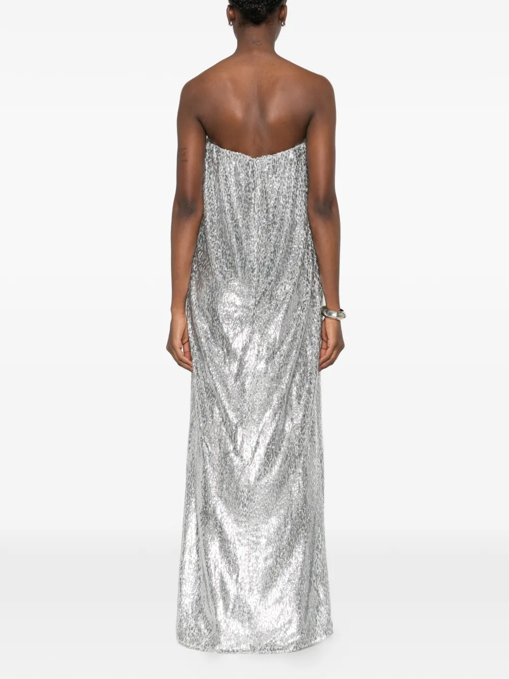 Серебристый люрекс, украшения, без бретелек, макси-длина