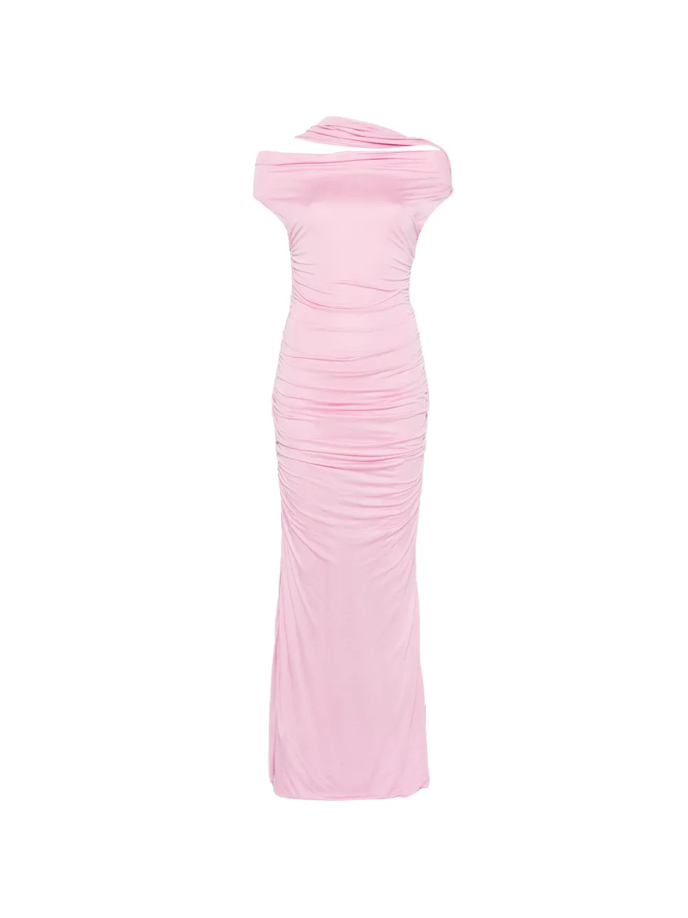 Платье макси длины с драпировкой бледно-розового цвета