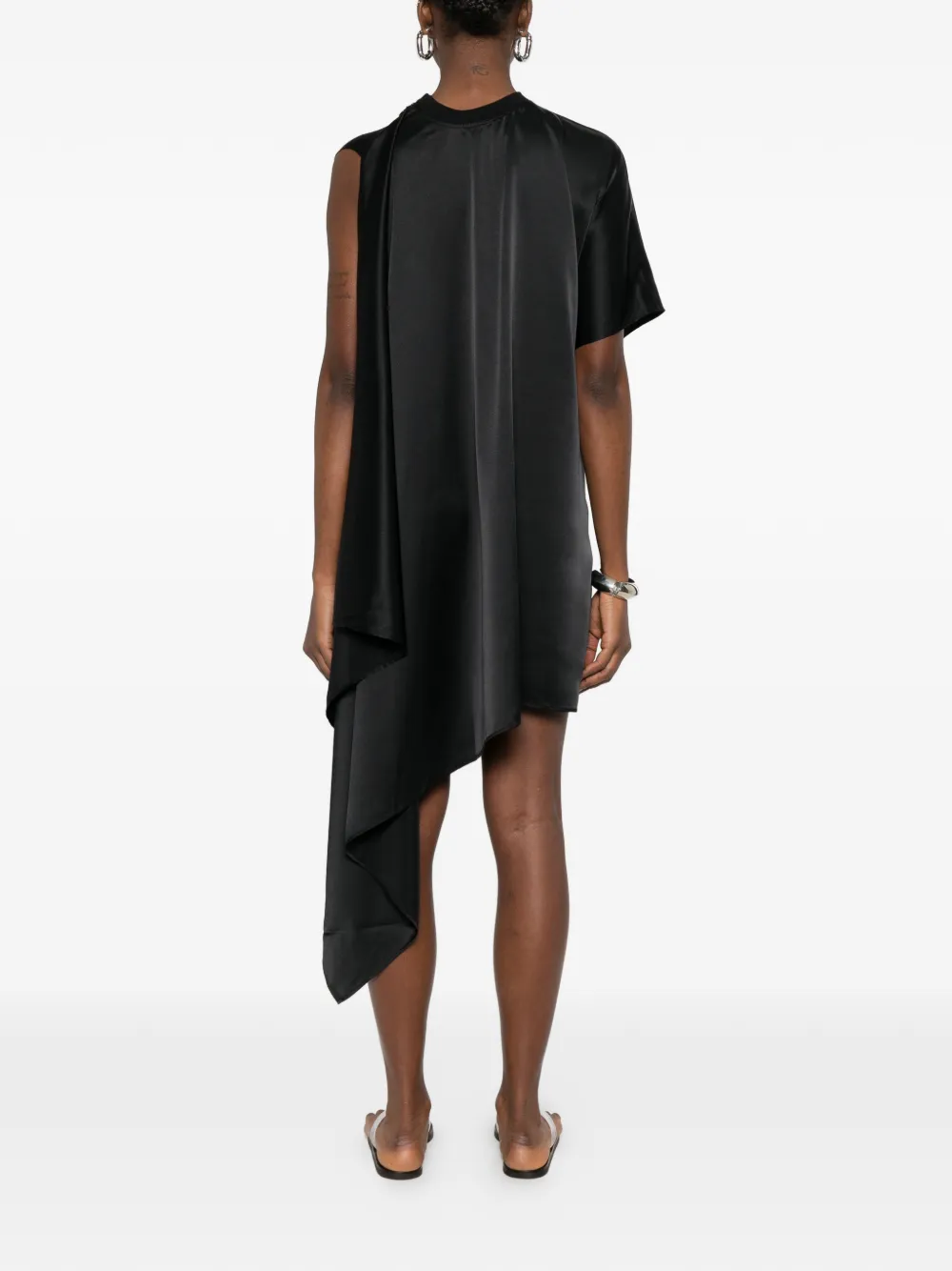 Черное драпированное платье с асимметричным подолом