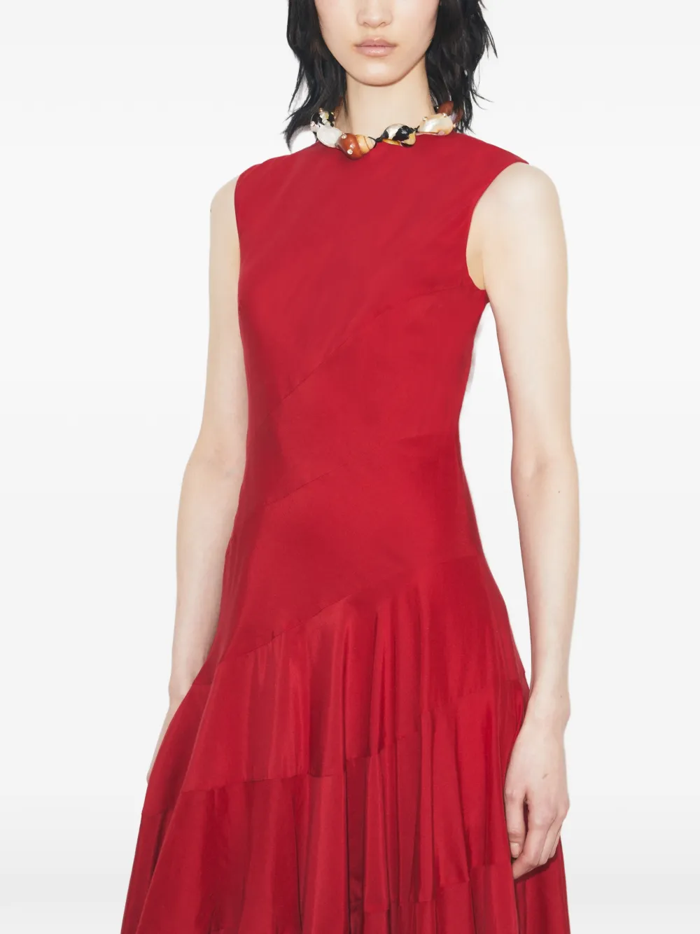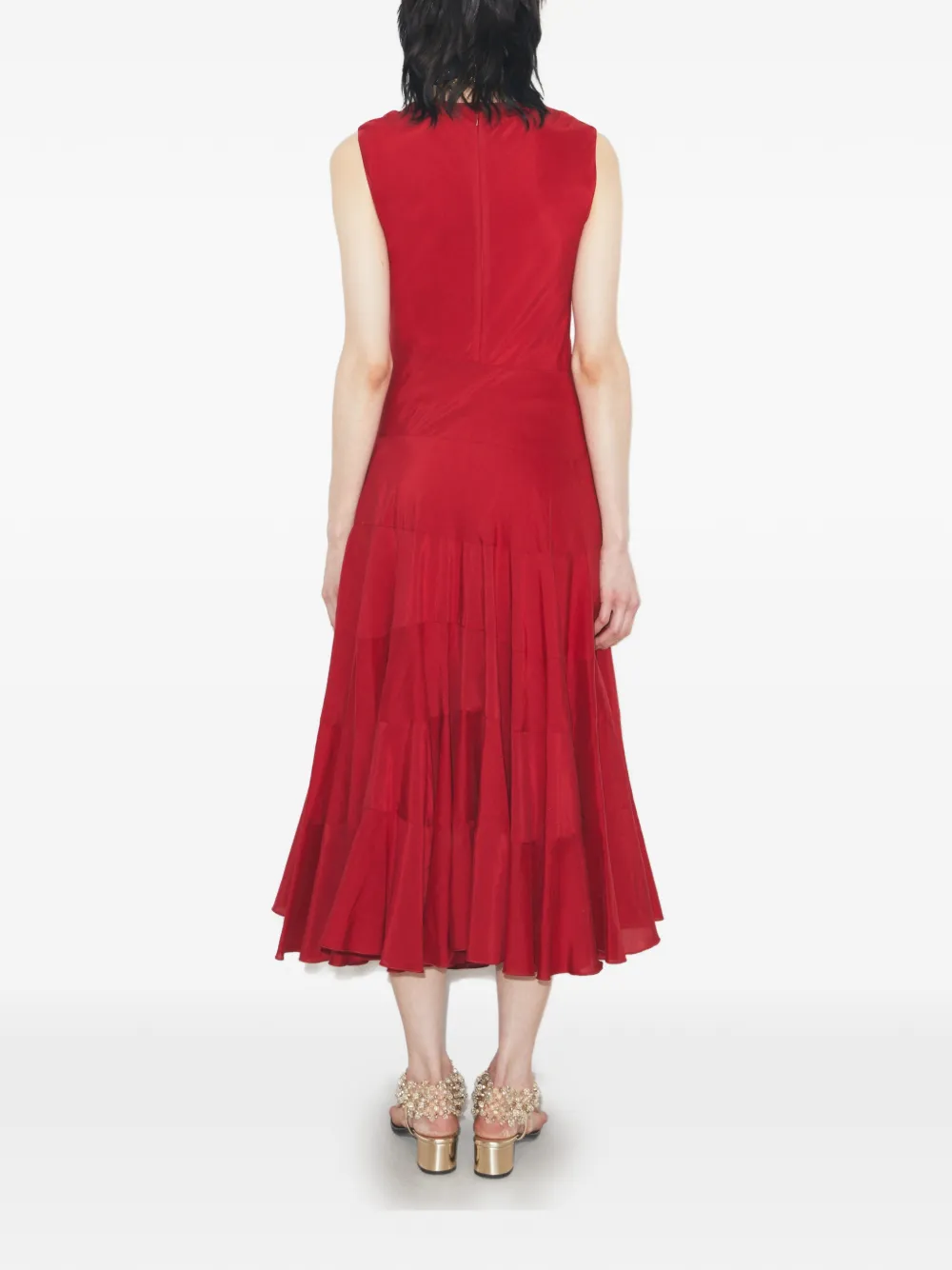 Красная многослойная юбка А-силуэта без рукавов