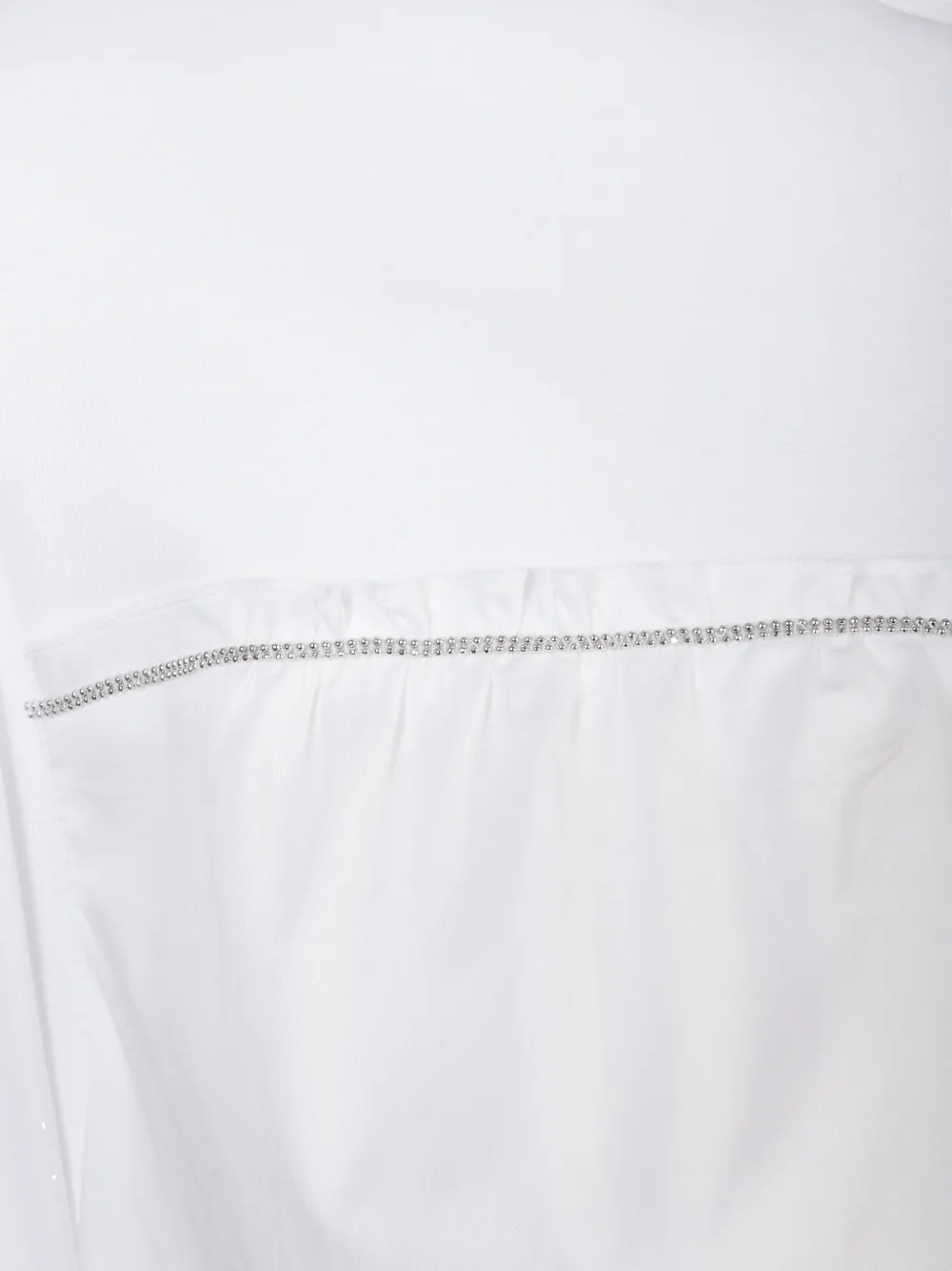 Белый топ с круглым вырезом и отделкой оборками