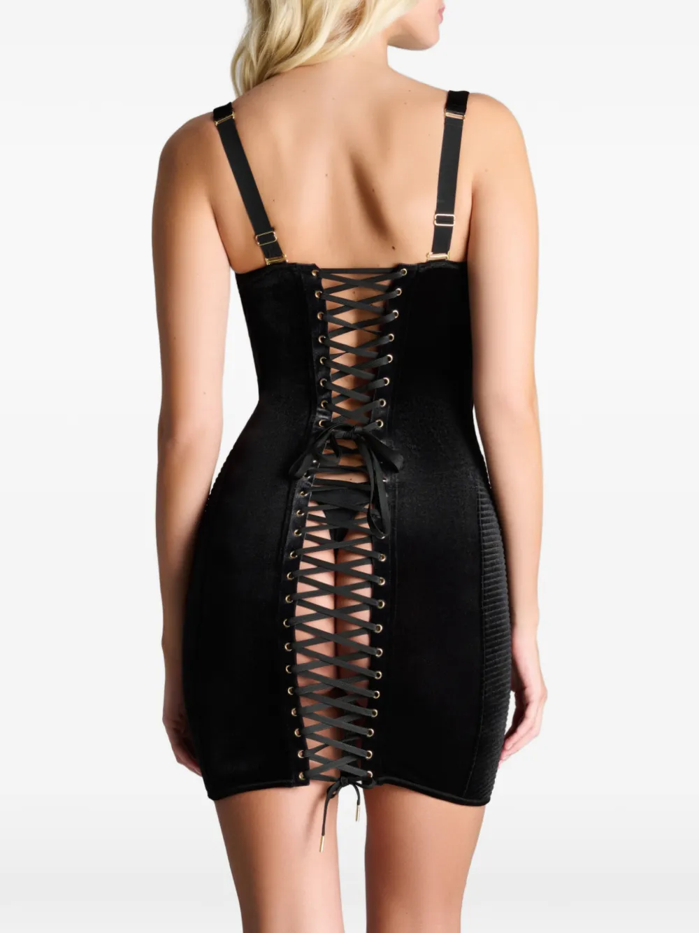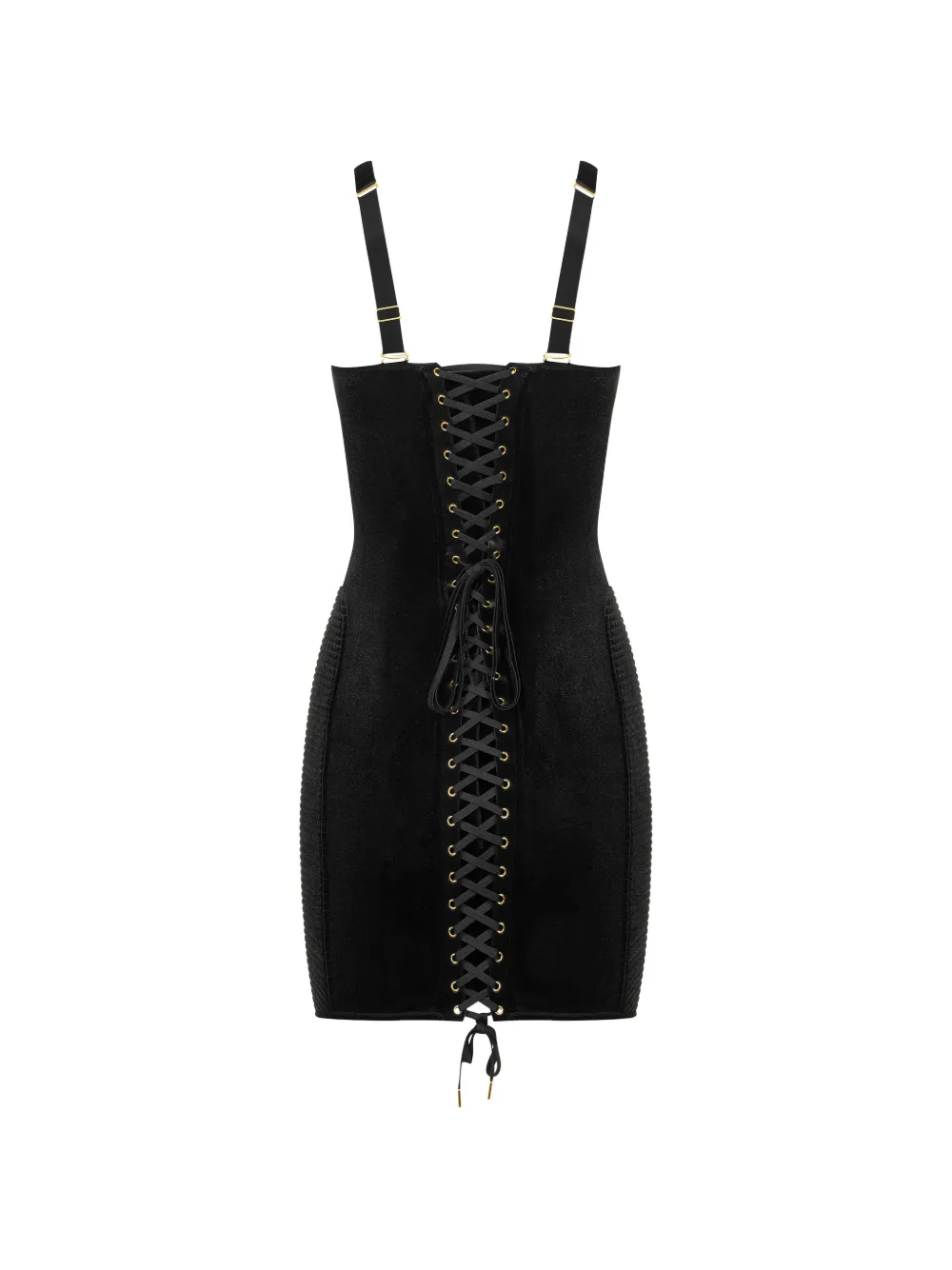 Черный корсет с лентой, бретельками и панелями