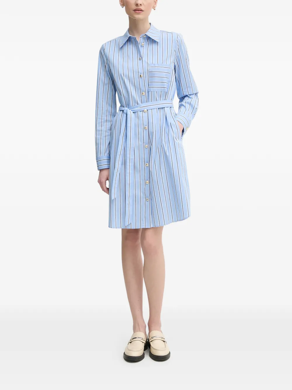 Полосатое мини-платье-рубашка с поясом Marc Aurel, синий