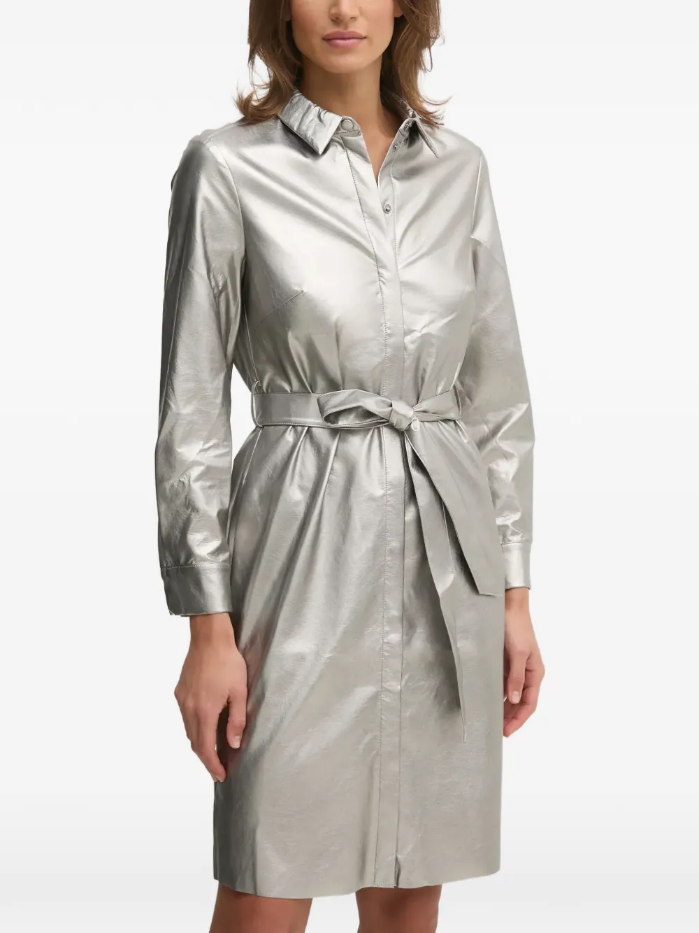 Мини-платье-рубашка с поясом Oui, серебряный