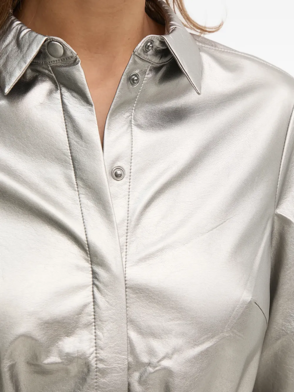 Рубашка с серебристым поясом, воротник-стойка, длинные рукава, застежка на пуговицы, металлизированная отделка