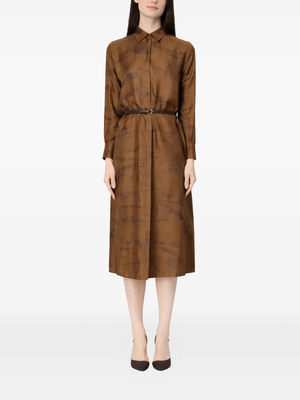 Платье-рубашка миди с поясом Max Mara, коричневый