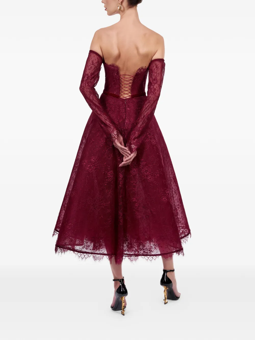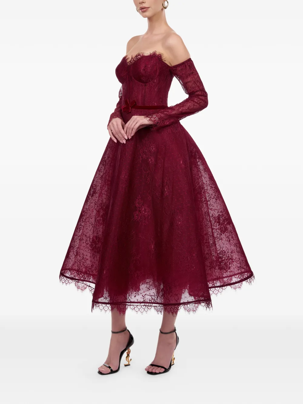 Бордовый топ с открытыми плечами и длинными рукавами