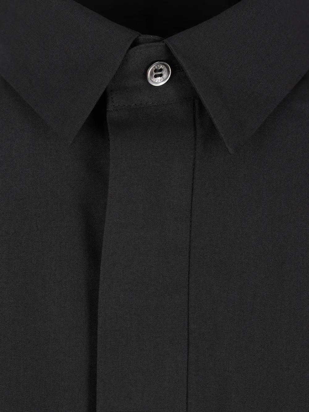 Черный, длинные рукава, воротник с острыми концами, застежка на пуговицах