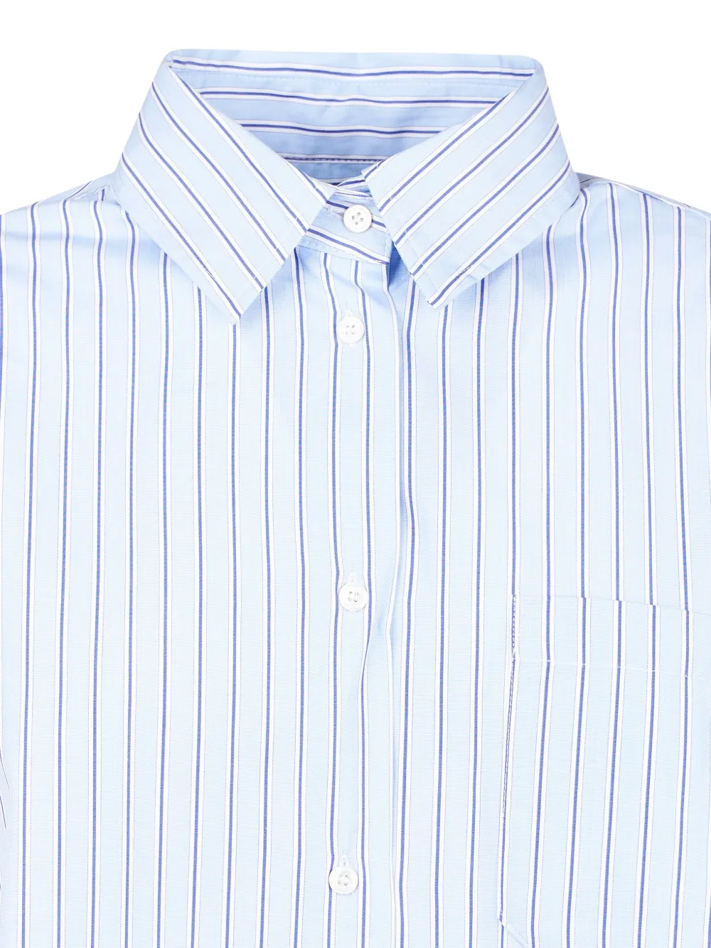 Голубая рубашка в полоску с застежкой на пуговицы спереди, накладным нагрудным карманом, длинными рукавами и манжетами на пуговицах