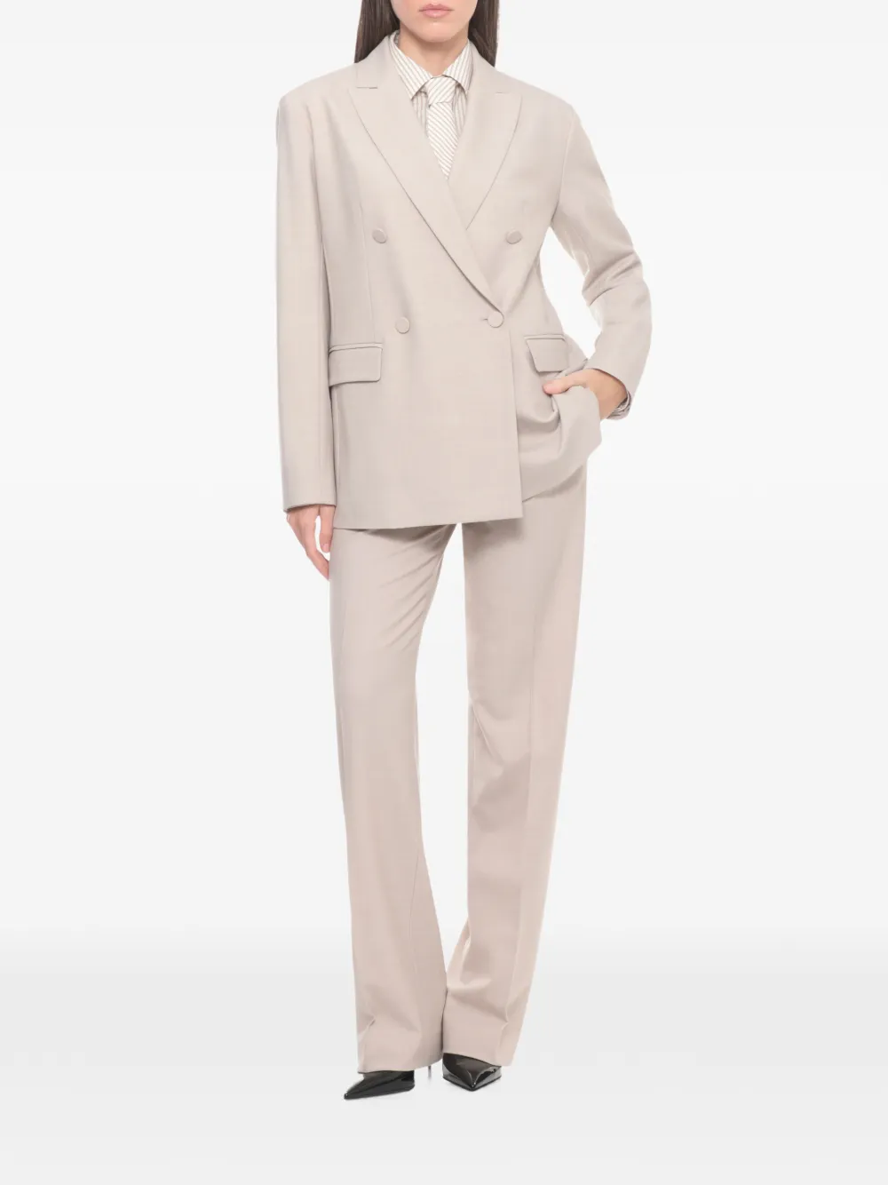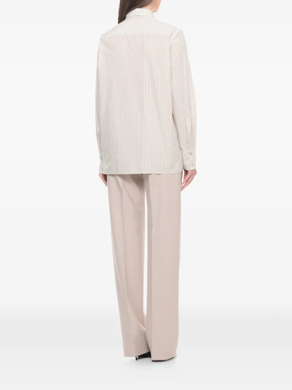 Бежевый в полоску галстук, застежка на пуговицы, длинные рукава, воротник