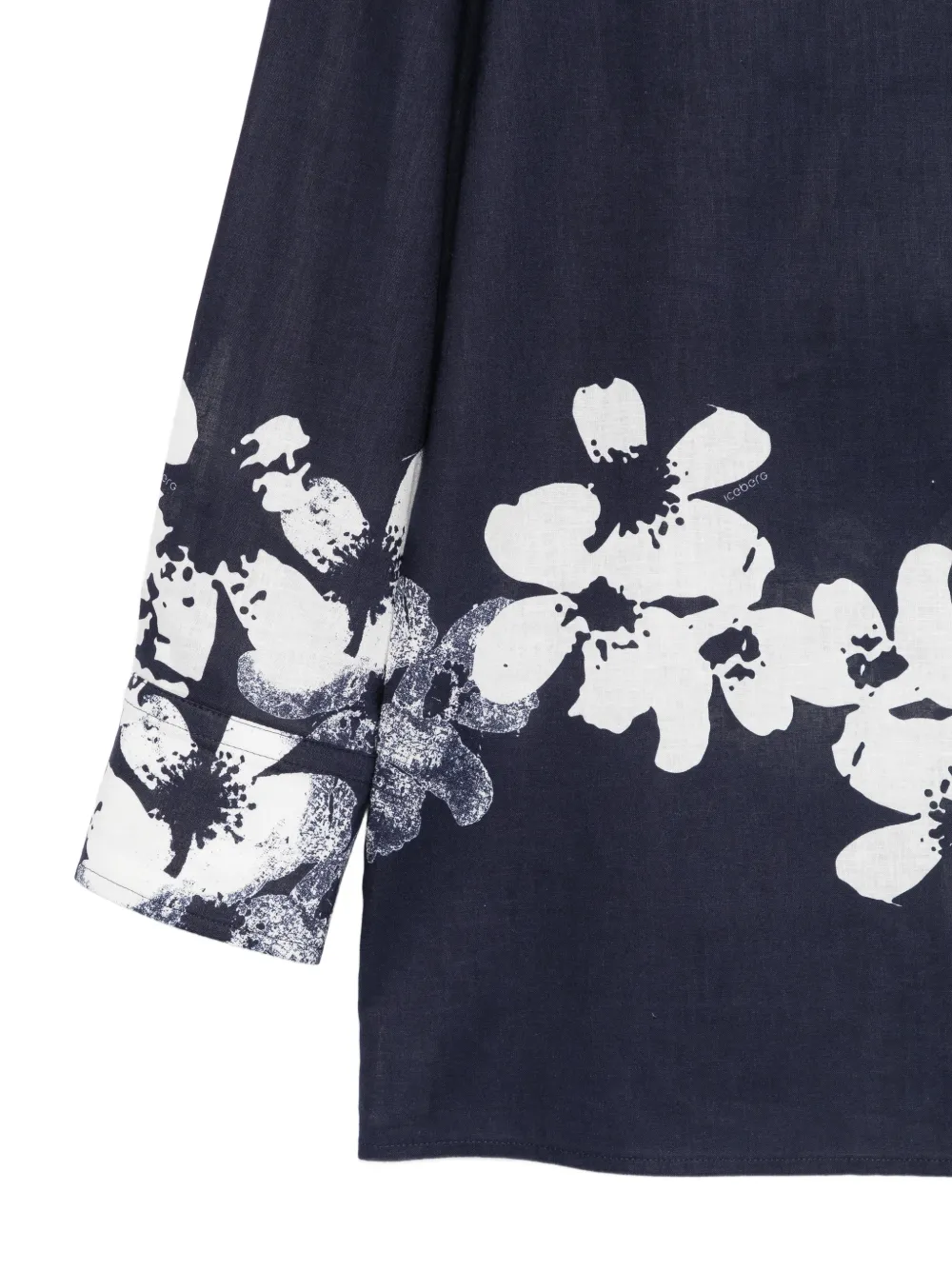 Темно-синяя рубашка с цветочным принтом, застежкой на пуговицы, классическим воротником, длинными рукавами и манжетами на пуговицах