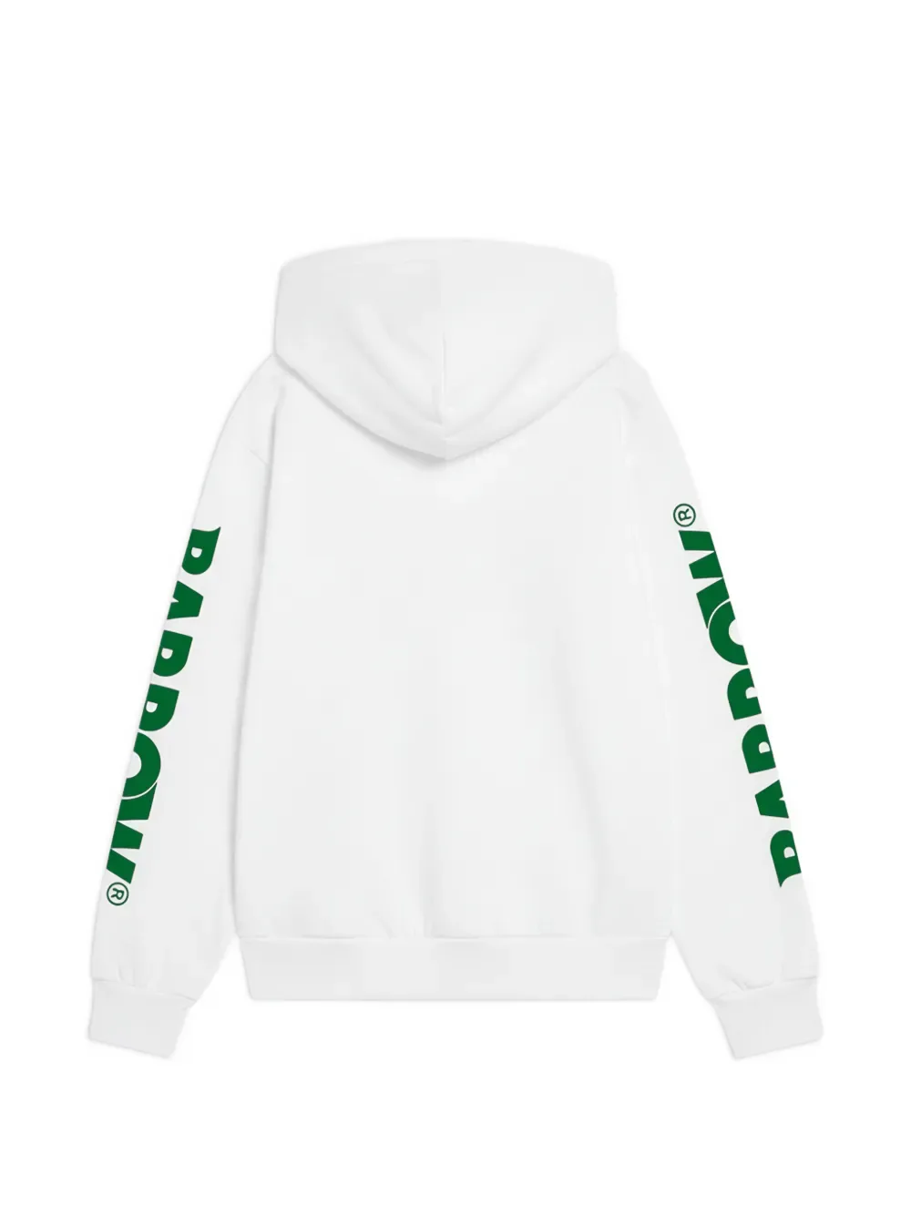 Белый свитшот с принтом логотипа, длинными рукавами, карманом-кенгуру и трикотажными манжетами