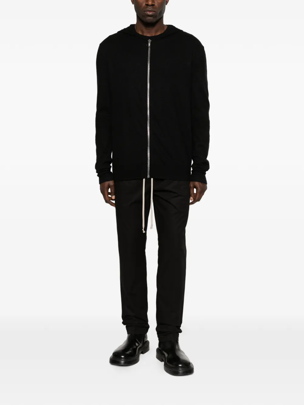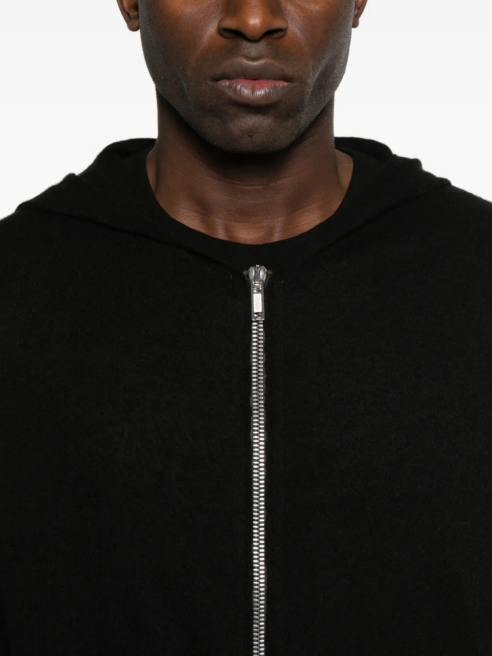 Черная худи с ребристой отделкой и застежкой-молнией спереди