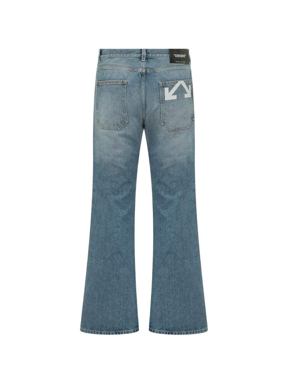 Светло-синие джинсы средней посадки со стрелкой, пять карманов, шлевки для ремня, стандартный крой, нашивка с логотипом сзади