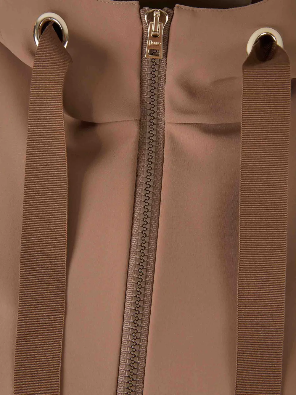 Светло-коричневый высокий воротник двухсторонняя застежка-молния боковые карманы регулируемый подол водоотталкивающий