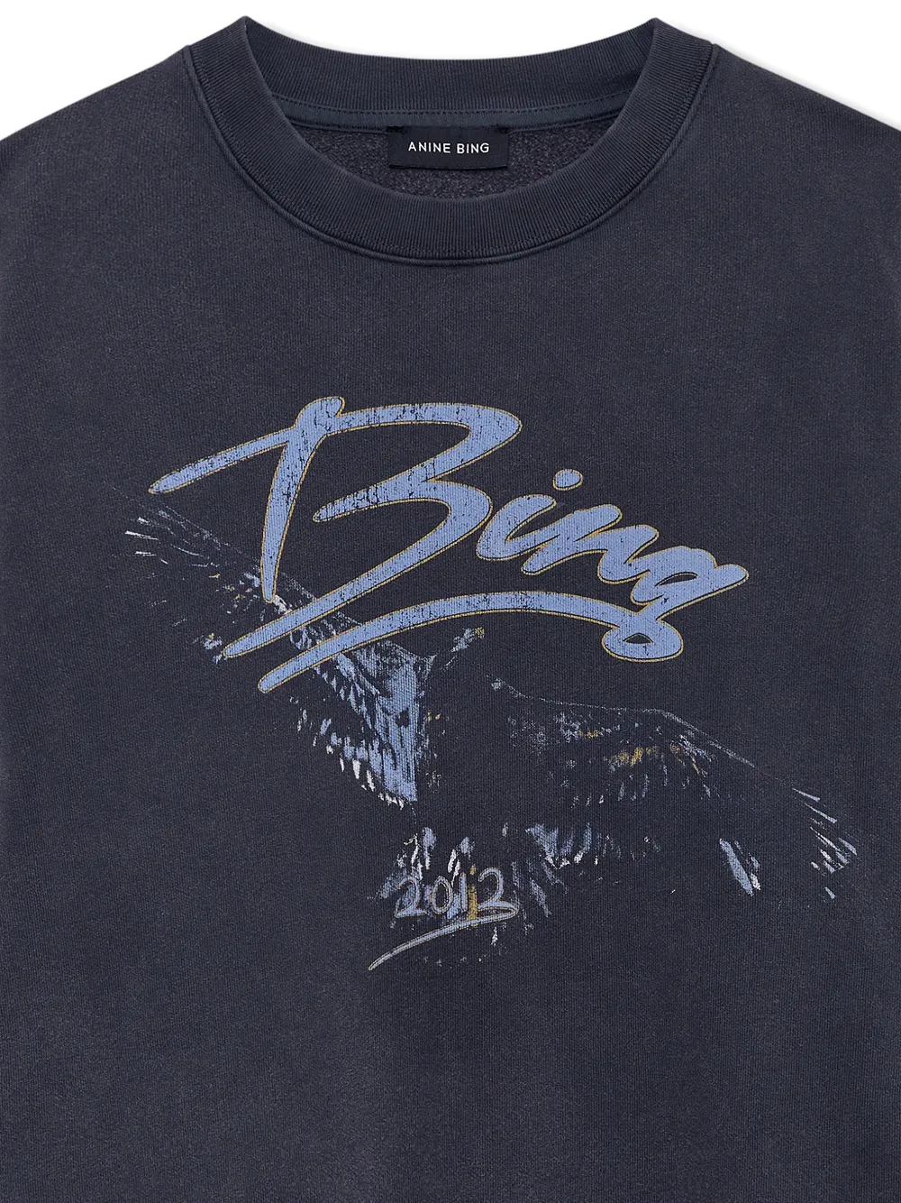 Вымытый черный свитшот с графичным принтом, круглым вырезом, длинными рукавами и трикотажной резинкой на манжетах