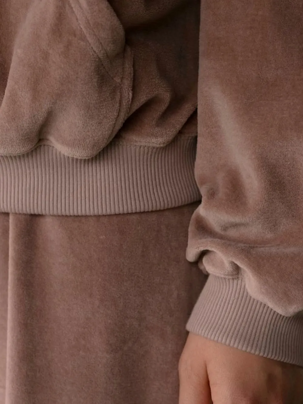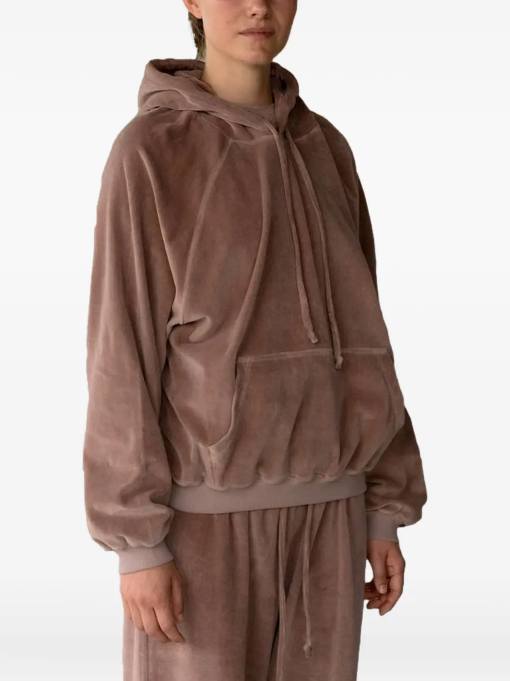 Коричневый худи на завязках, передний карман, рукава-реглан, ребристый низ, ребристые манжеты