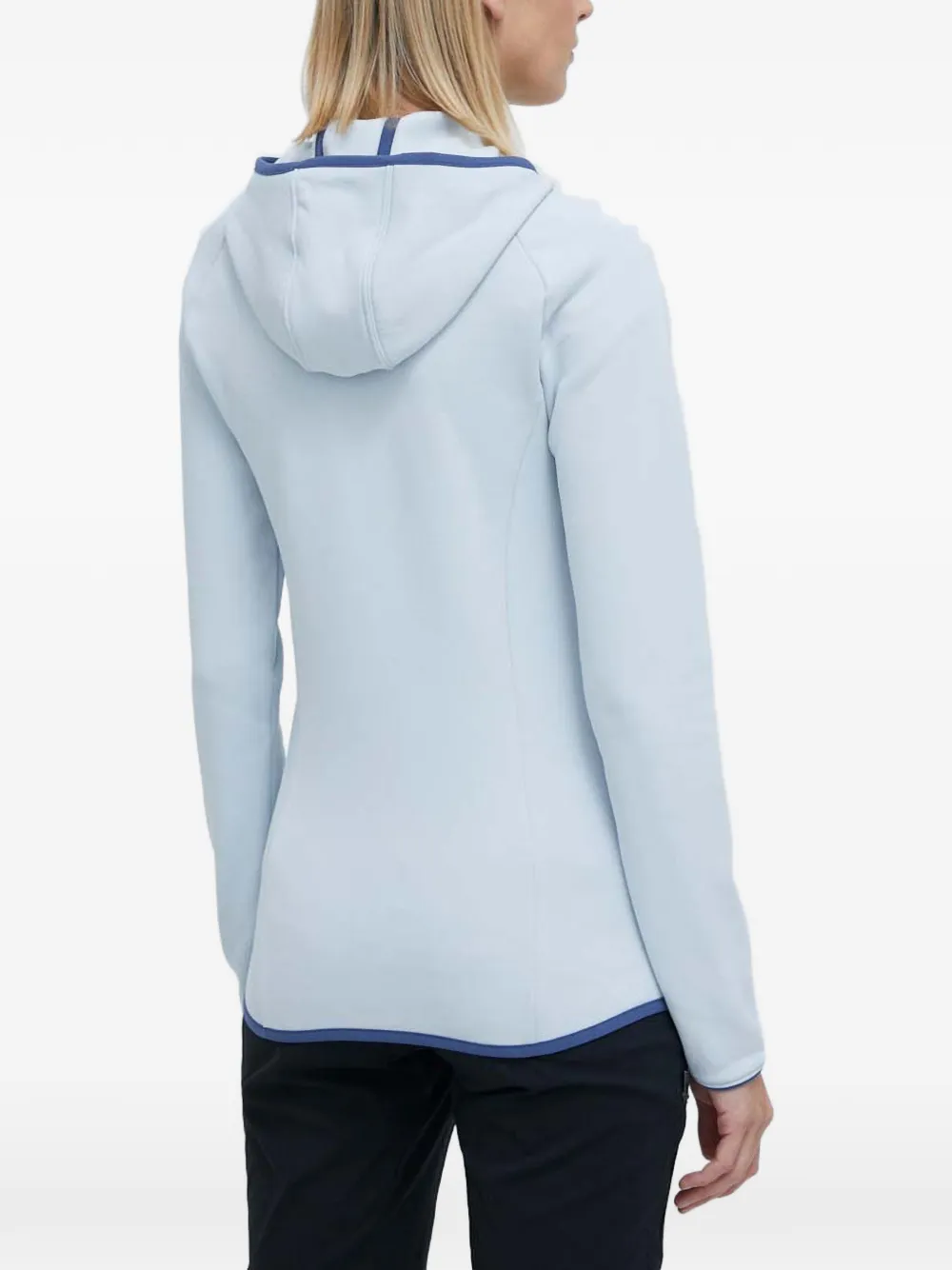 Синий худи с длинными рукавами на молнии, капюшоном, логотипом и контрастной отделкой