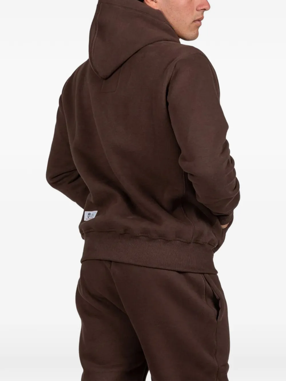 Темно-коричневый худи с кулиской, карманом-кенгуру, ребристым низом и манжетами