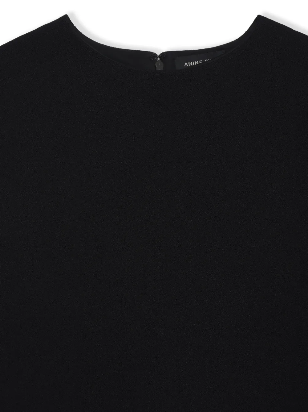 Черный, круглый вырез, потайная застежка на молнии сзади, приспущенные плечи, широкие рукава, короткие рукава и прямой подол.