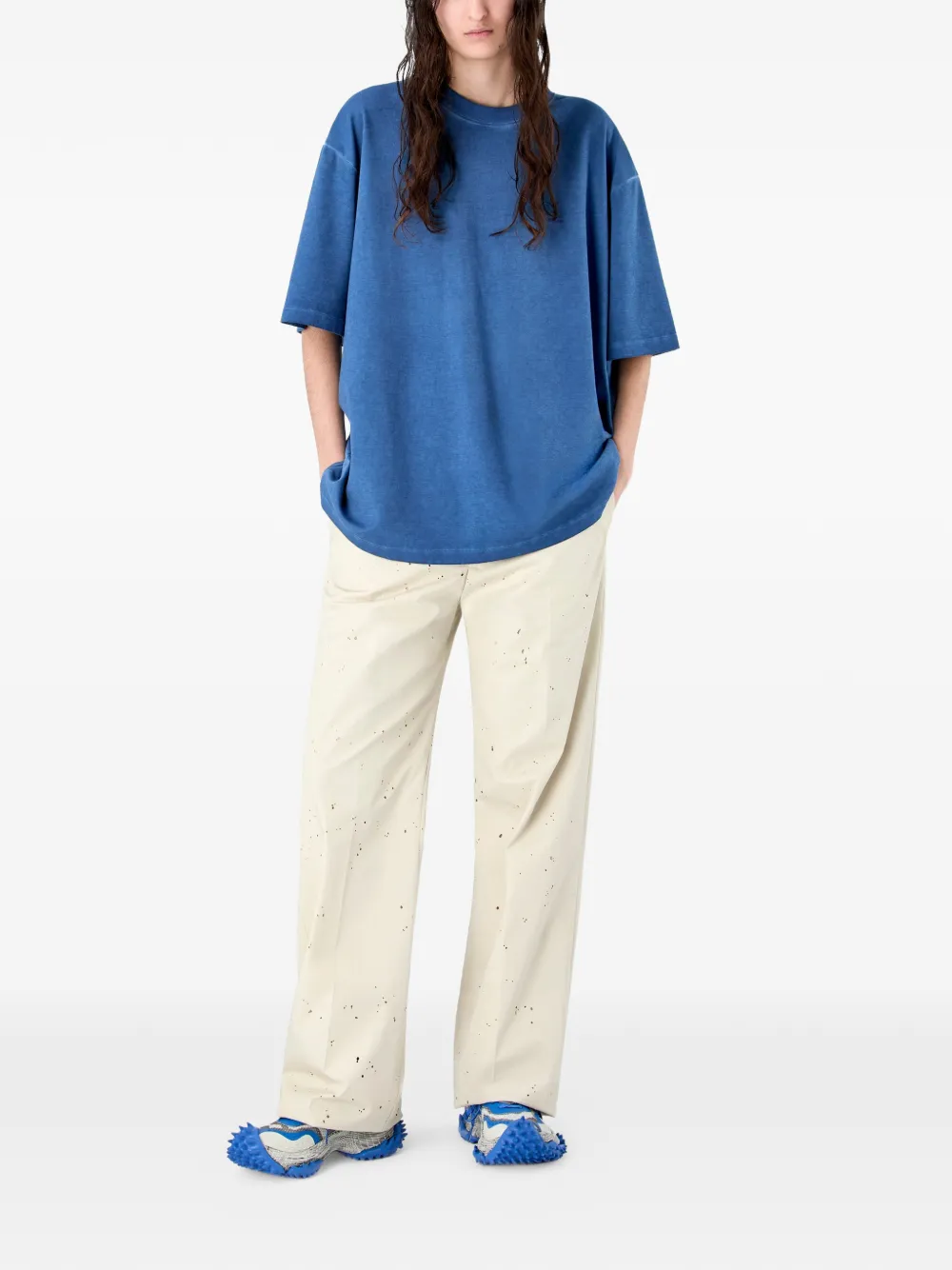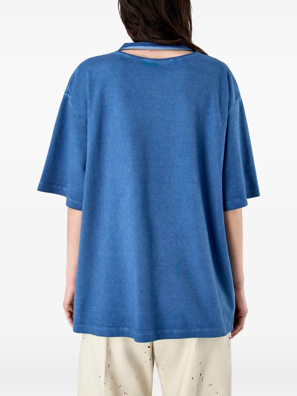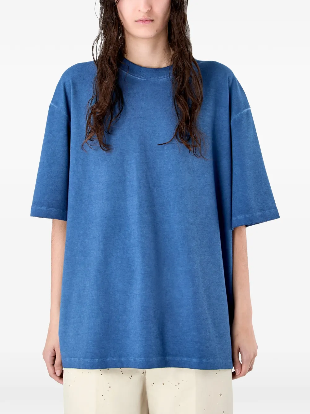 Синяя хлопковая футболка с короткими рукавами, круглым вырезом и фактурной отделкой логотипа