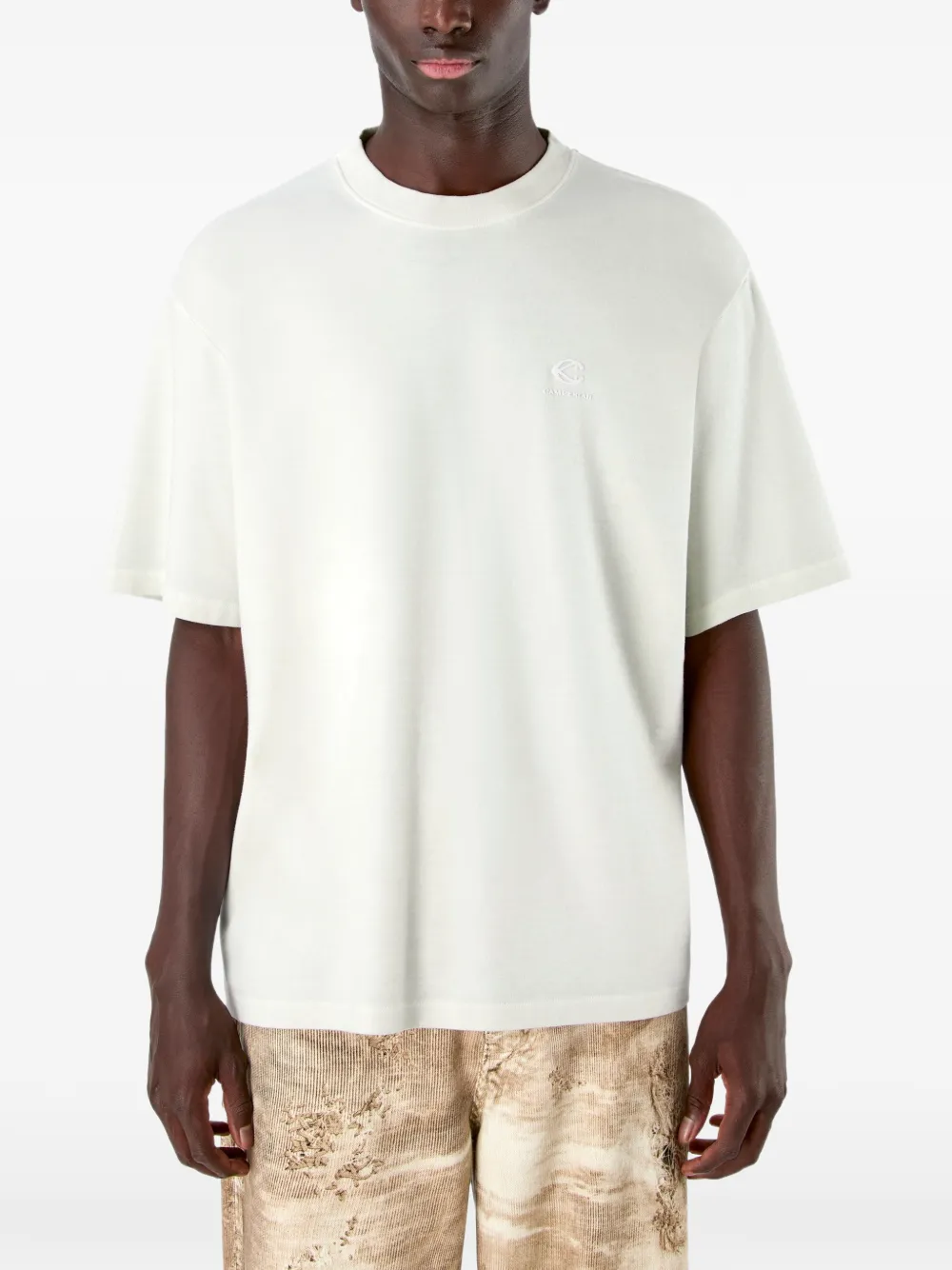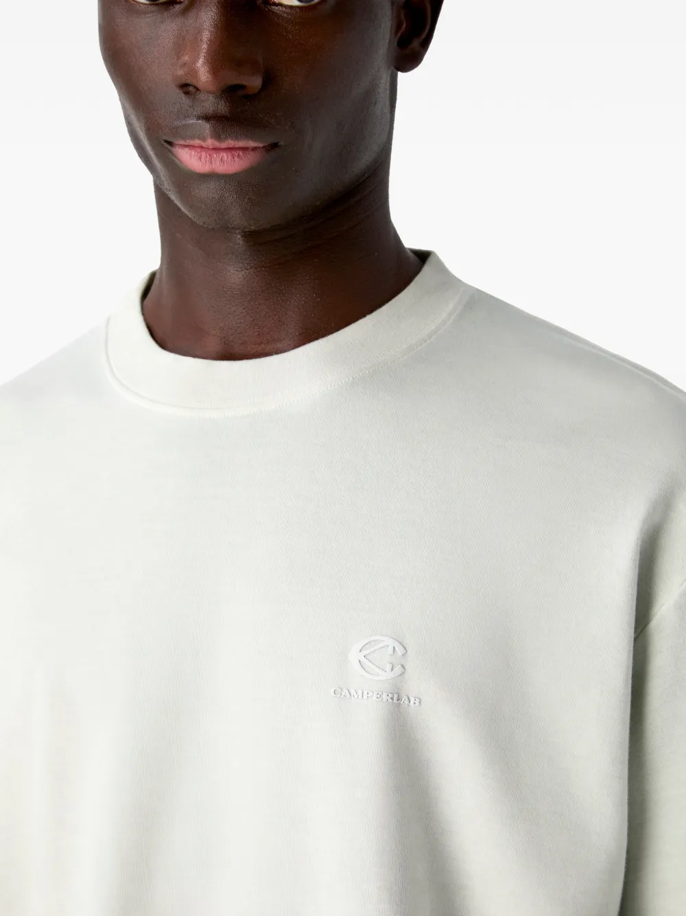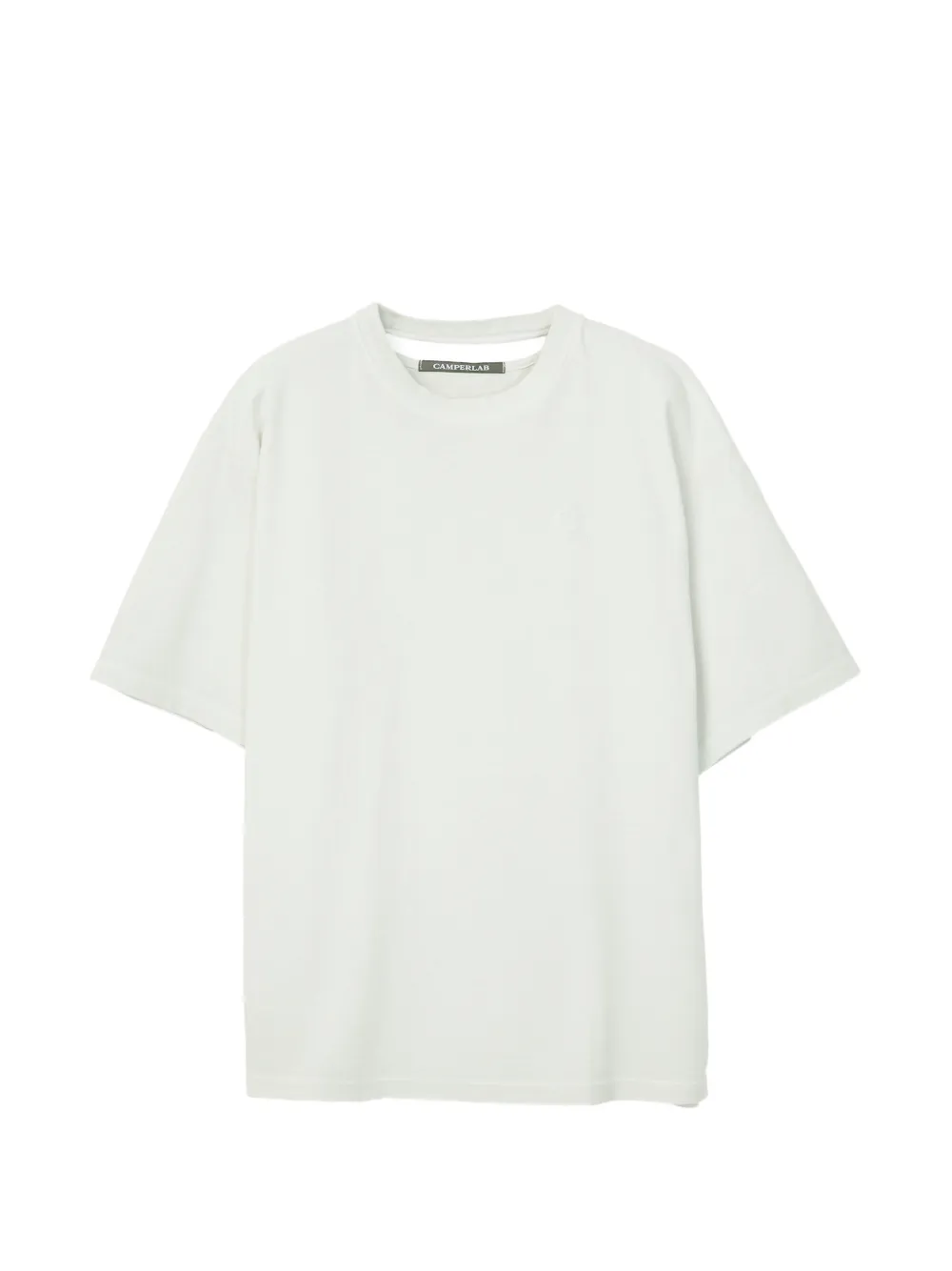Светло-пастельно-серая футболка с логотипом, круглым вырезом и короткими рукавами из хлопка