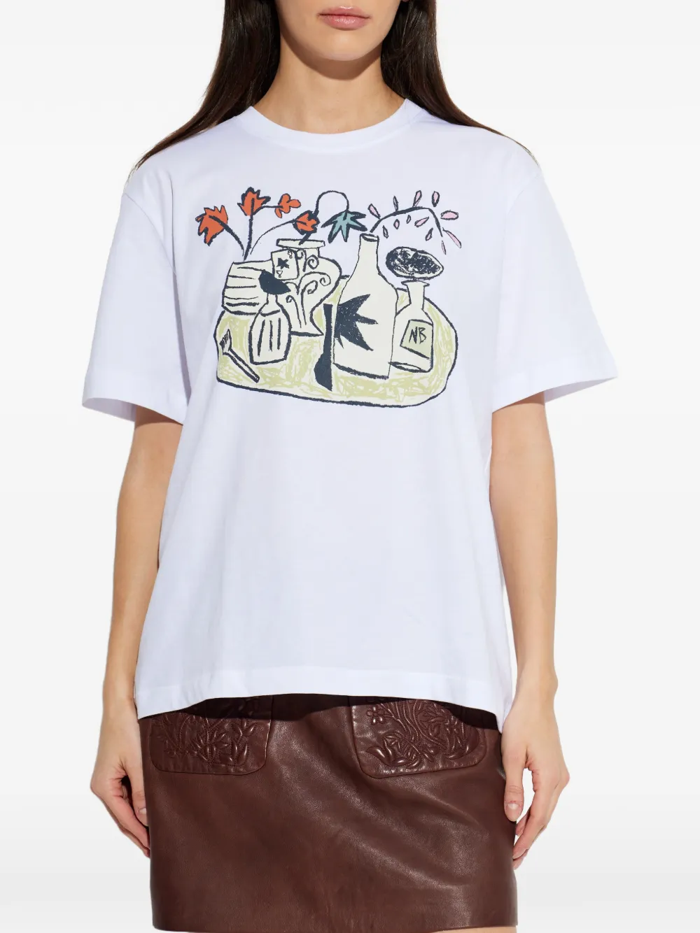Белая футболка из органического хлопка с принтом, круглым вырезом и короткими рукавами