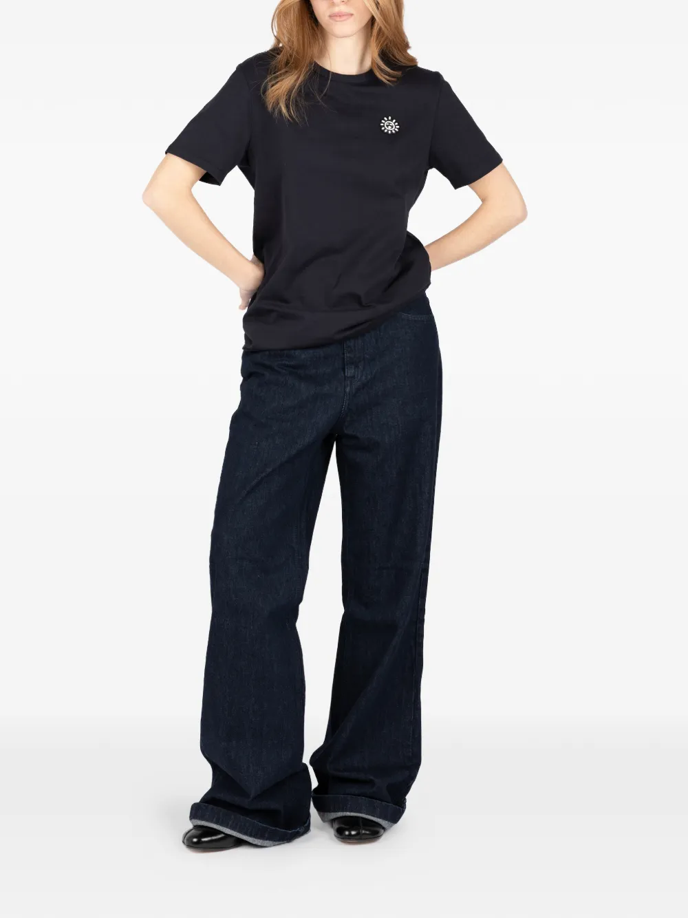 Синяя хлопковая футболка с круглым вырезом, короткими рукавами и нашивкой с логотипом