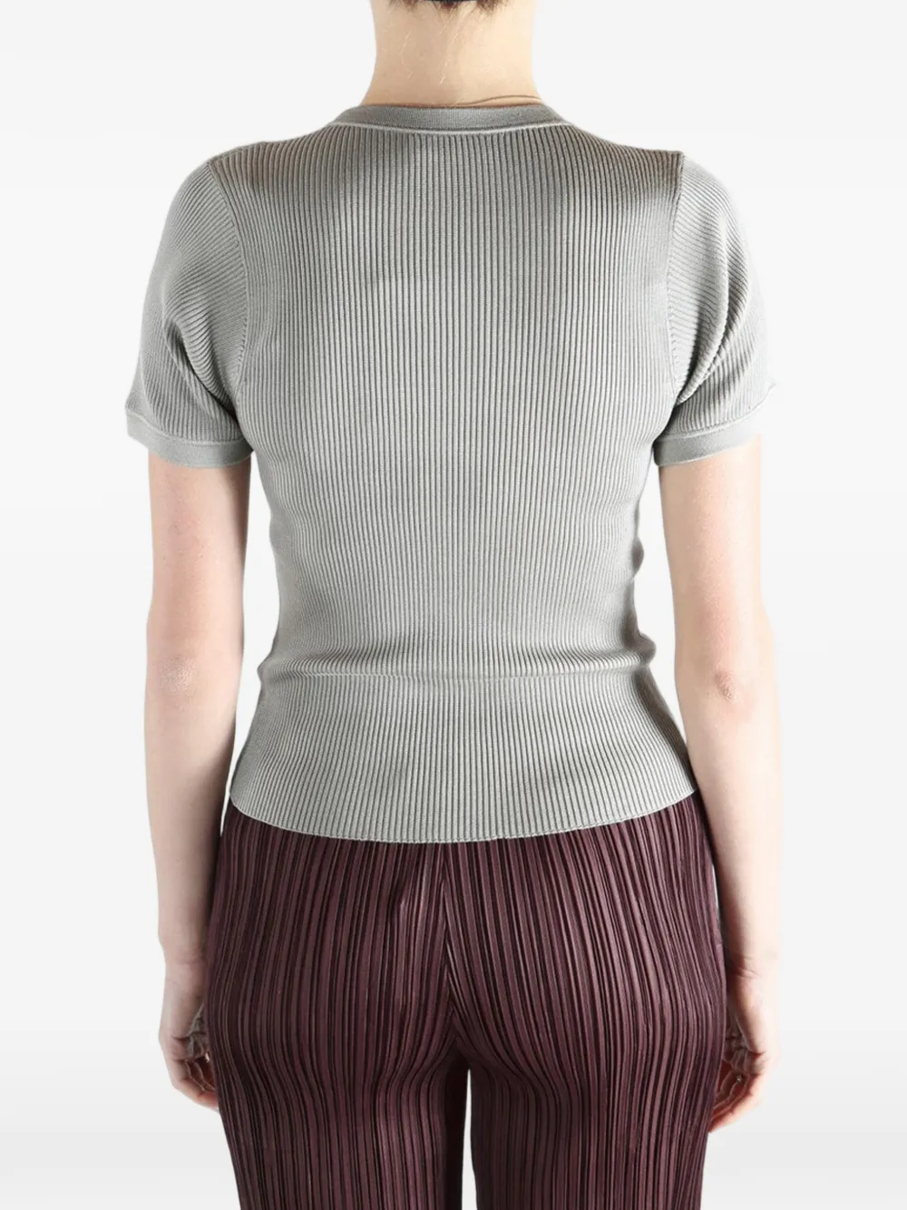 Серый туман, вязаный рубчатый трикотаж, круглый вырез, короткие рукава, прямой подол