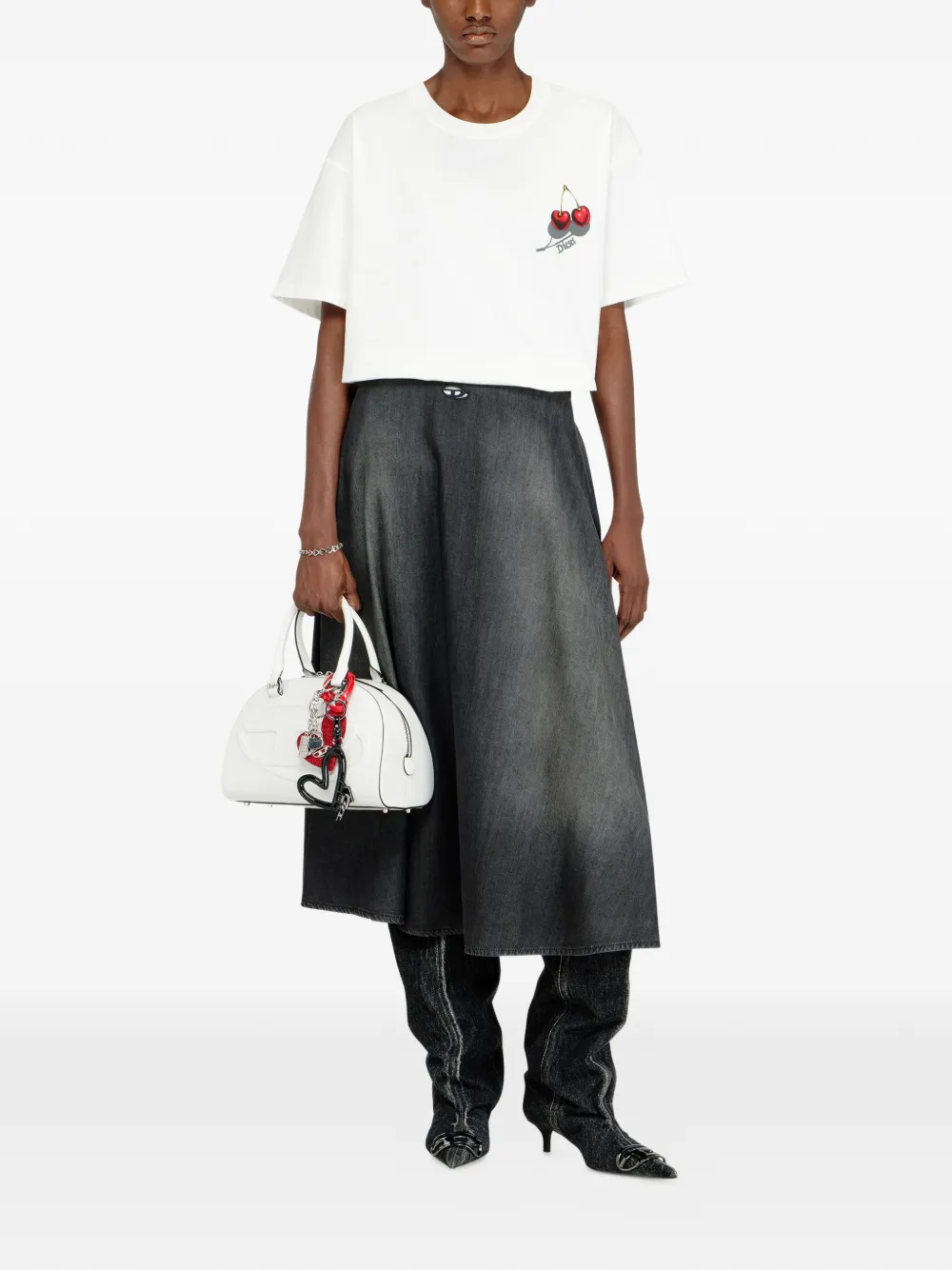Футболка с вишневым принтом Diesel, белый