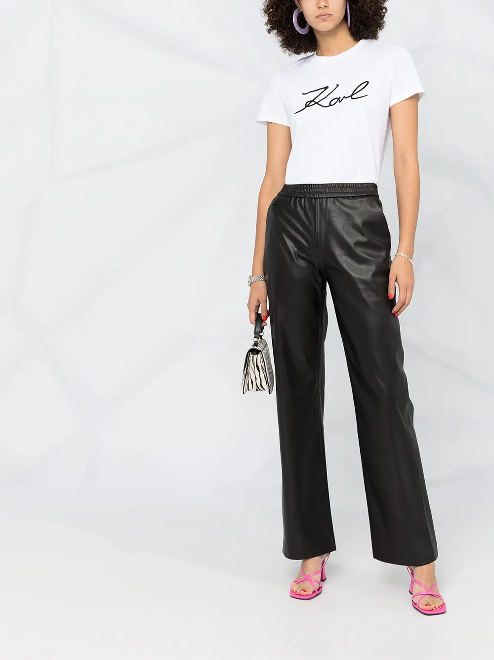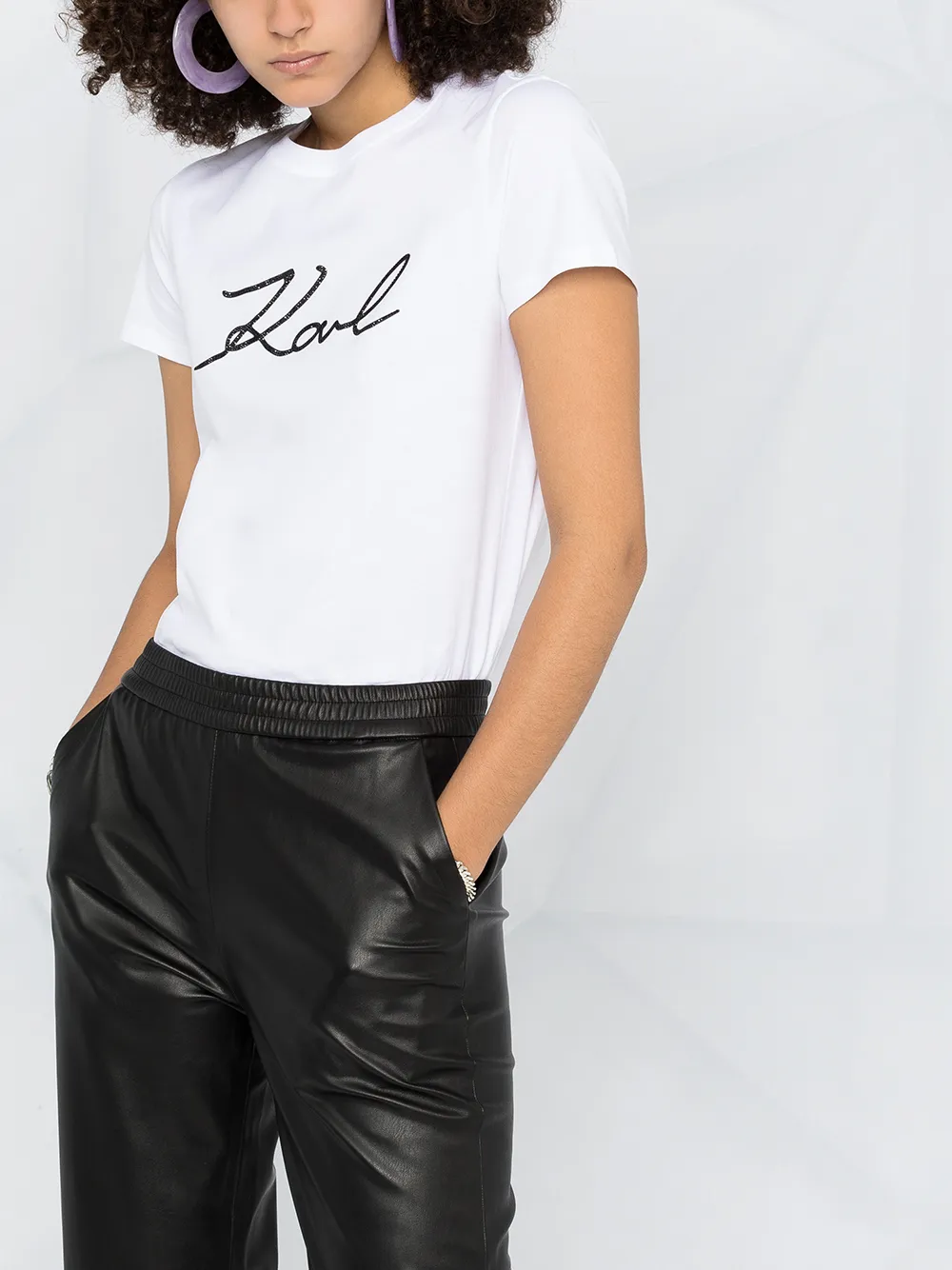 Декор в виде логотипа Karligraphy, круглый вырез и короткие рукава. Цвет: белый.