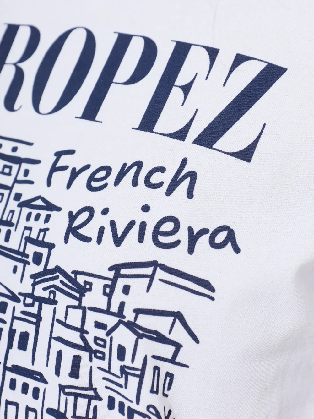 Белый цвет, графичный принт, круглый вырез, короткие рукава, принт на спине
