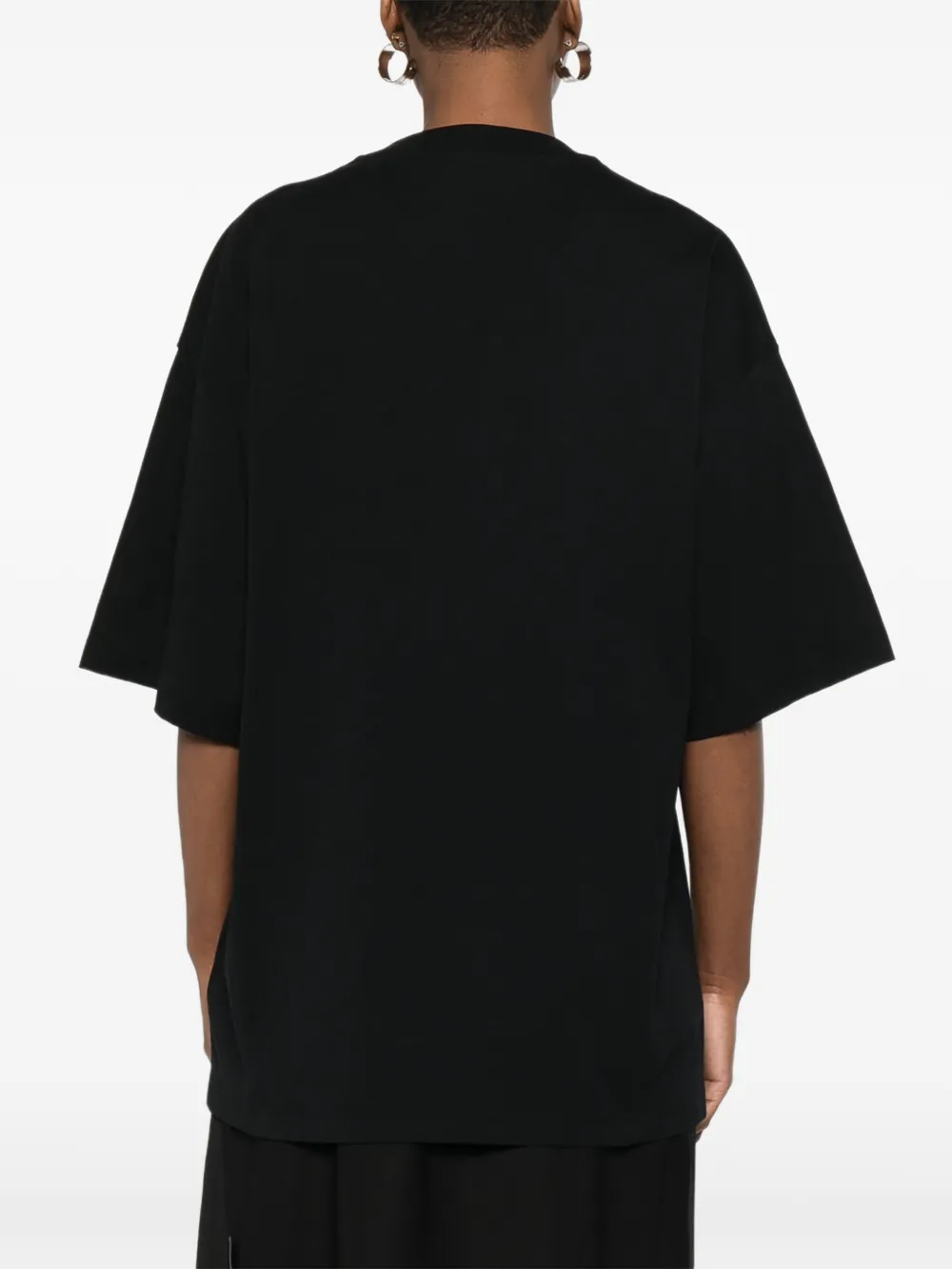 Черная хлопковая футболка с логотипом, круглым вырезом и короткими рукавами