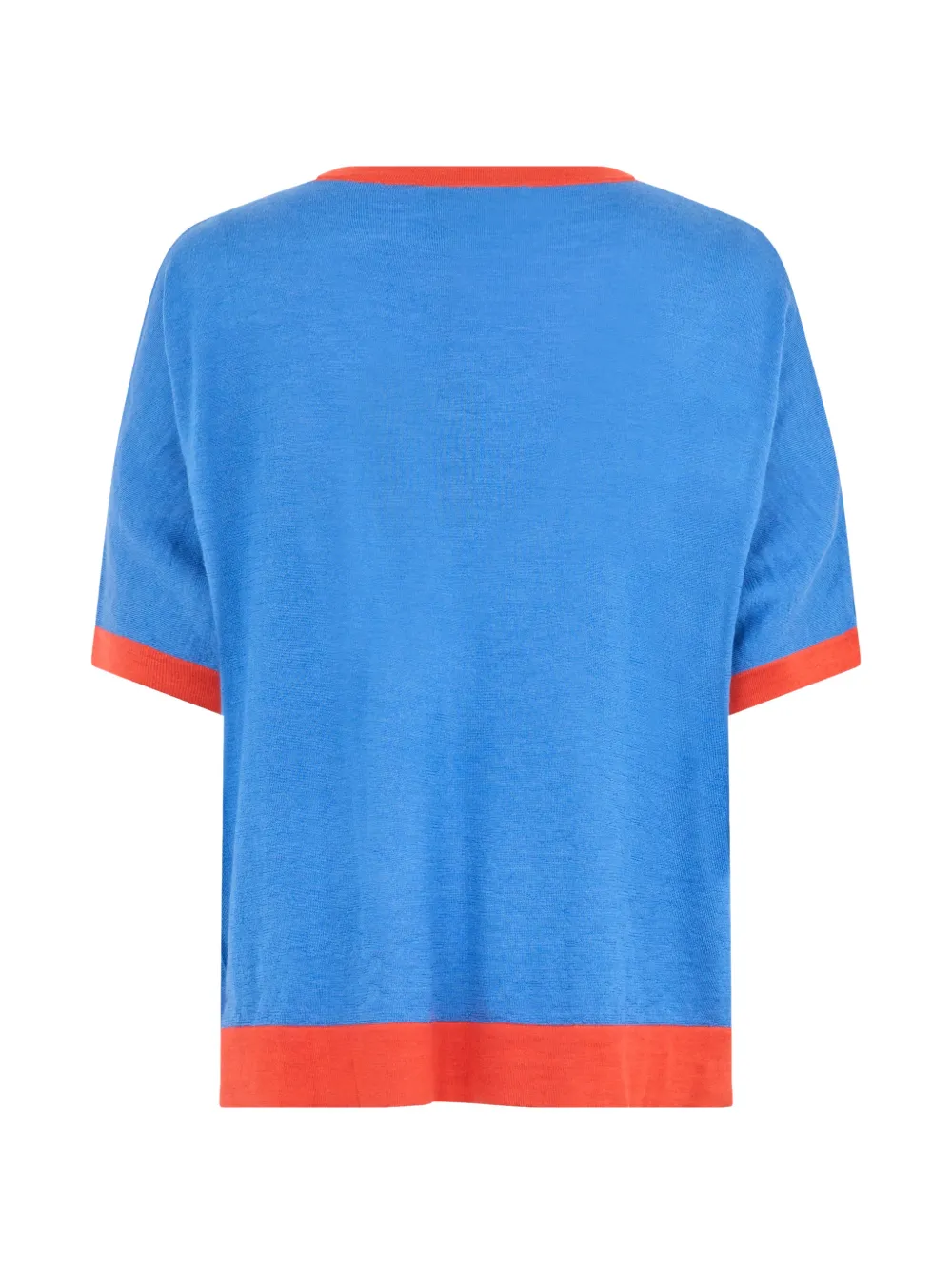 Синяя футболка с короткими рукавами, округлым вырезом и отделкой