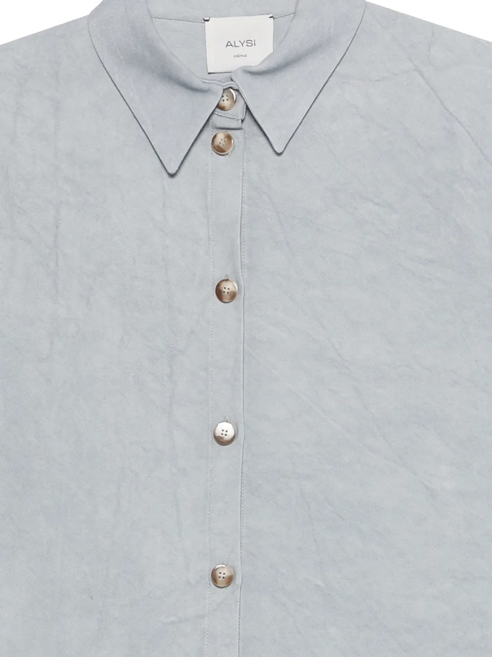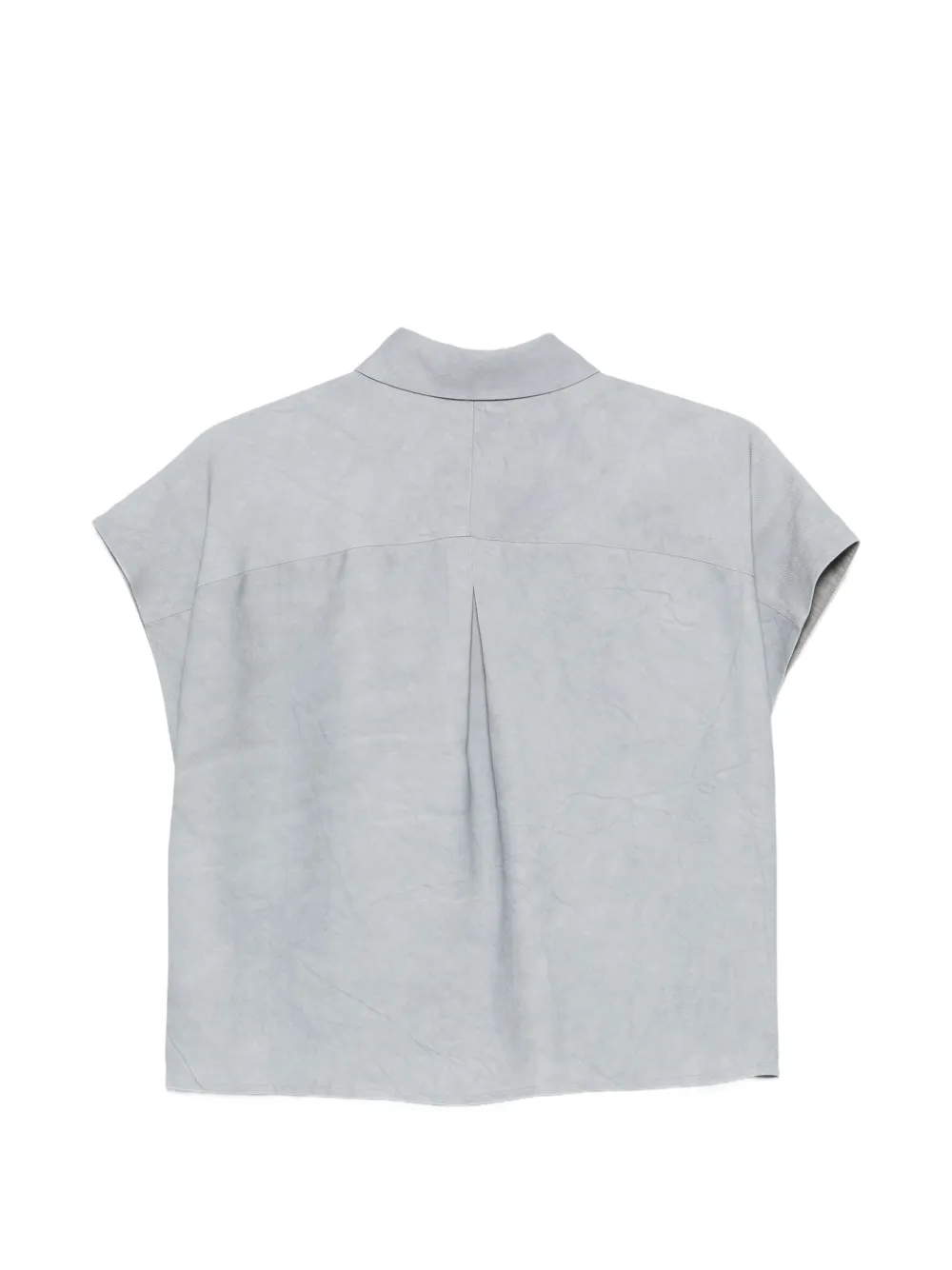 Светло-голубая рубашка с застежкой на пуговицы, короткими рукавами и классическим воротником