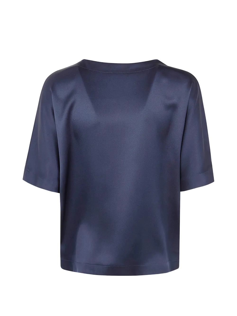 Синяя шелковая футболка с короткими рукавами, швом спереди и круглым вырезом