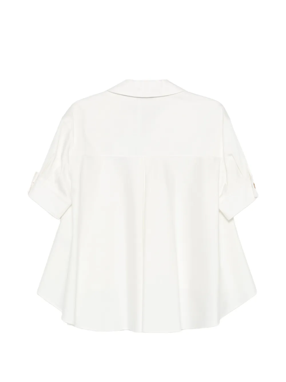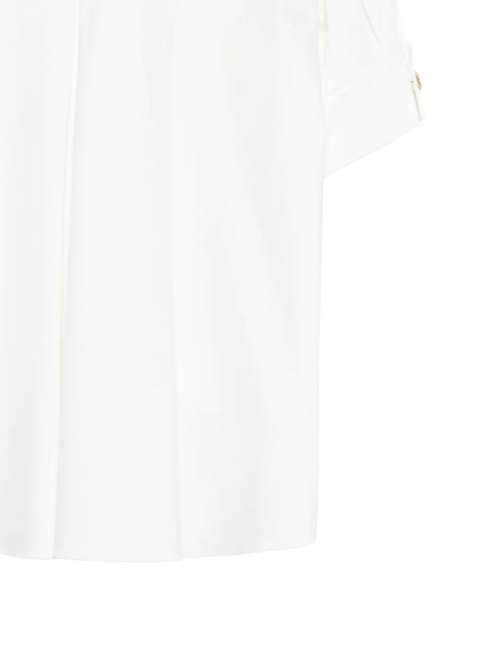 Белая панельная конструкция с боковыми разрезами и рукавами на пуговицах