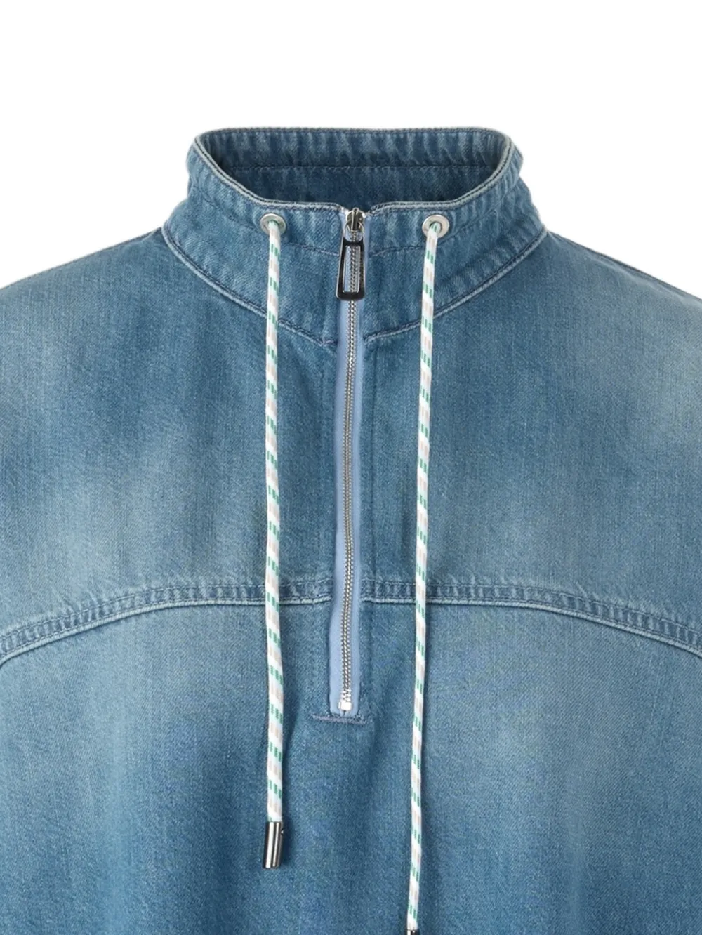 Синий топ с длинными рукавами, молнией наполовину и воротником-стойкой