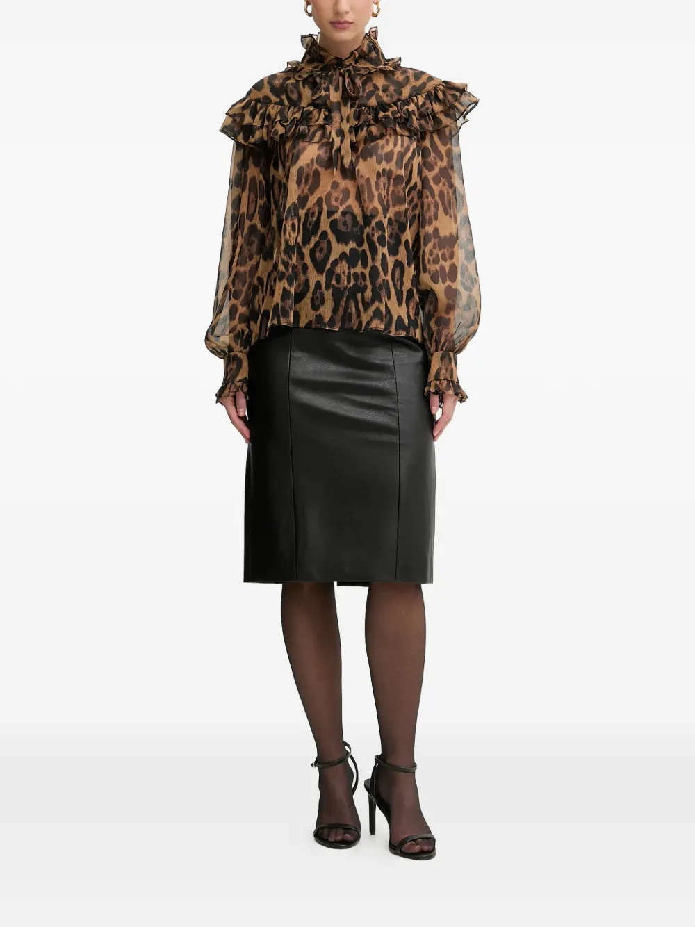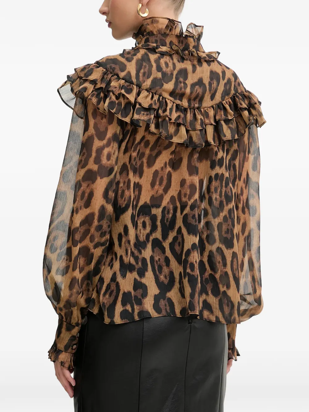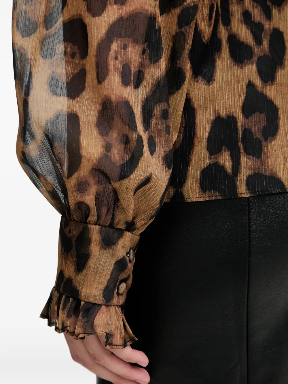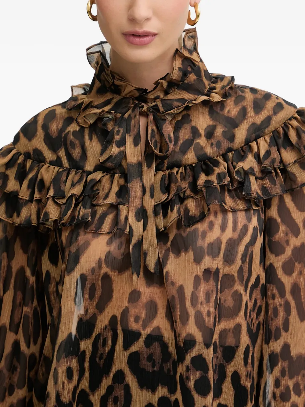 Коричневый леопардовый принт, оборки, завязки, длинные рукава