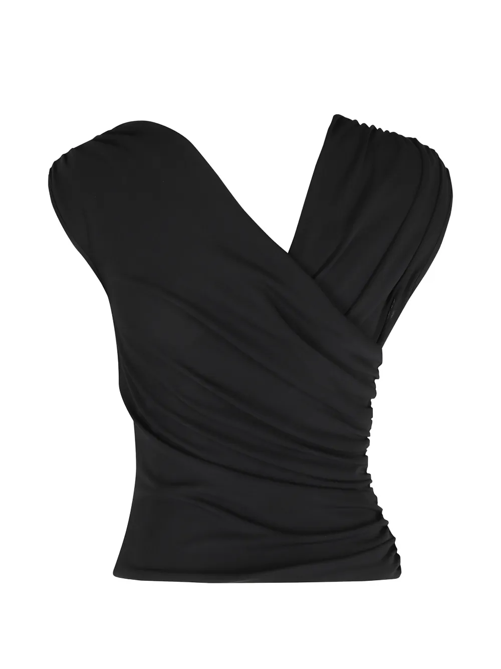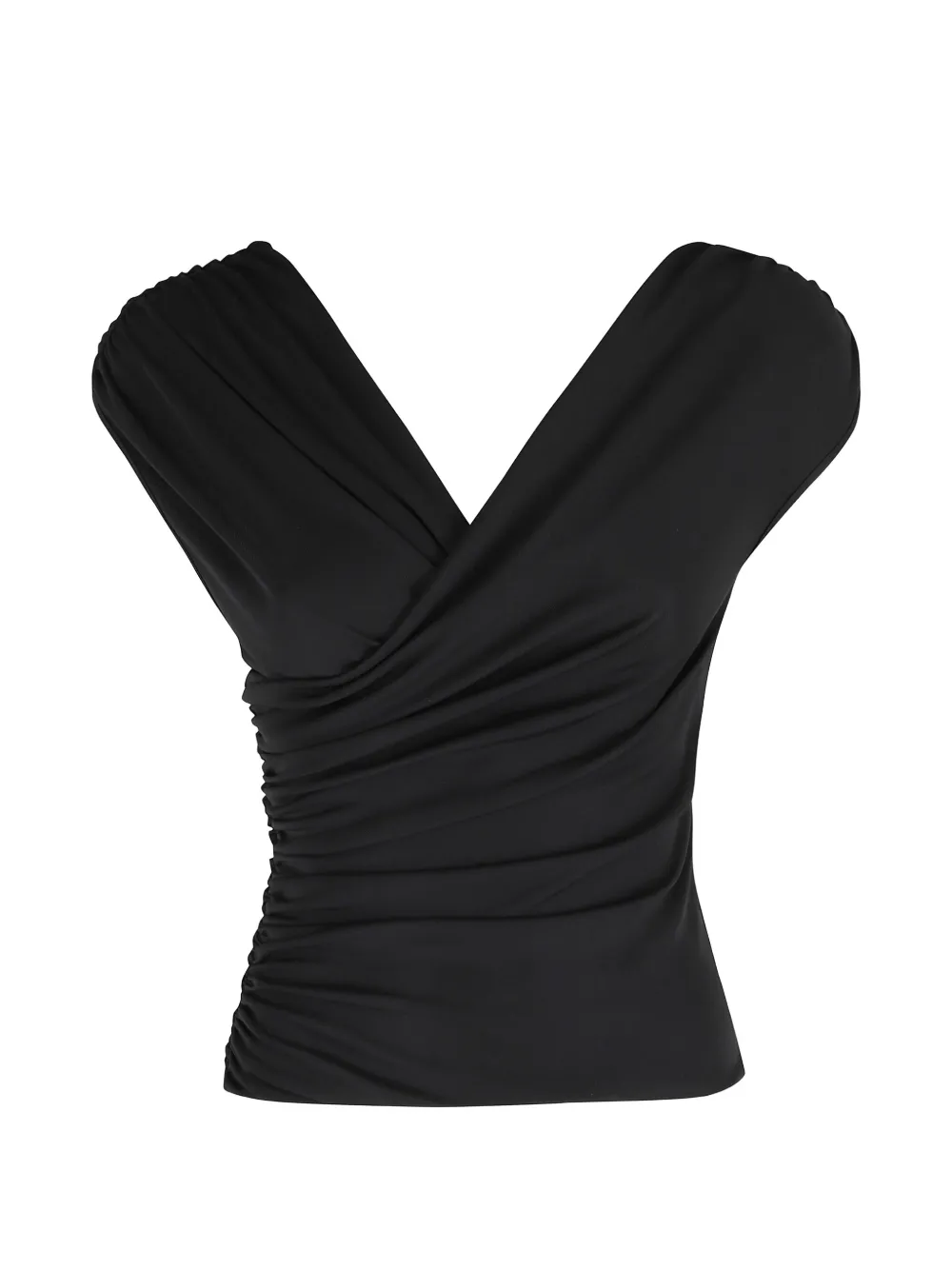 Черный топ без рукавов с V-образным вырезом и драпировкой
