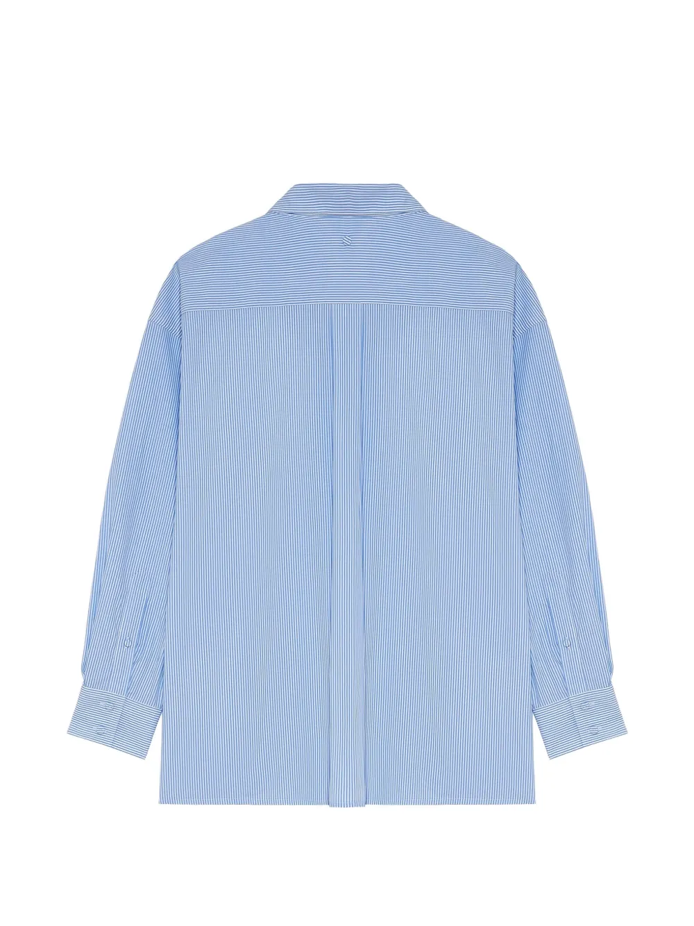 Темно-синяя хлопковая рубашка с полосатым узором, рукавами на пуговицах, застежкой на пуговицы спереди и длинными рукавами