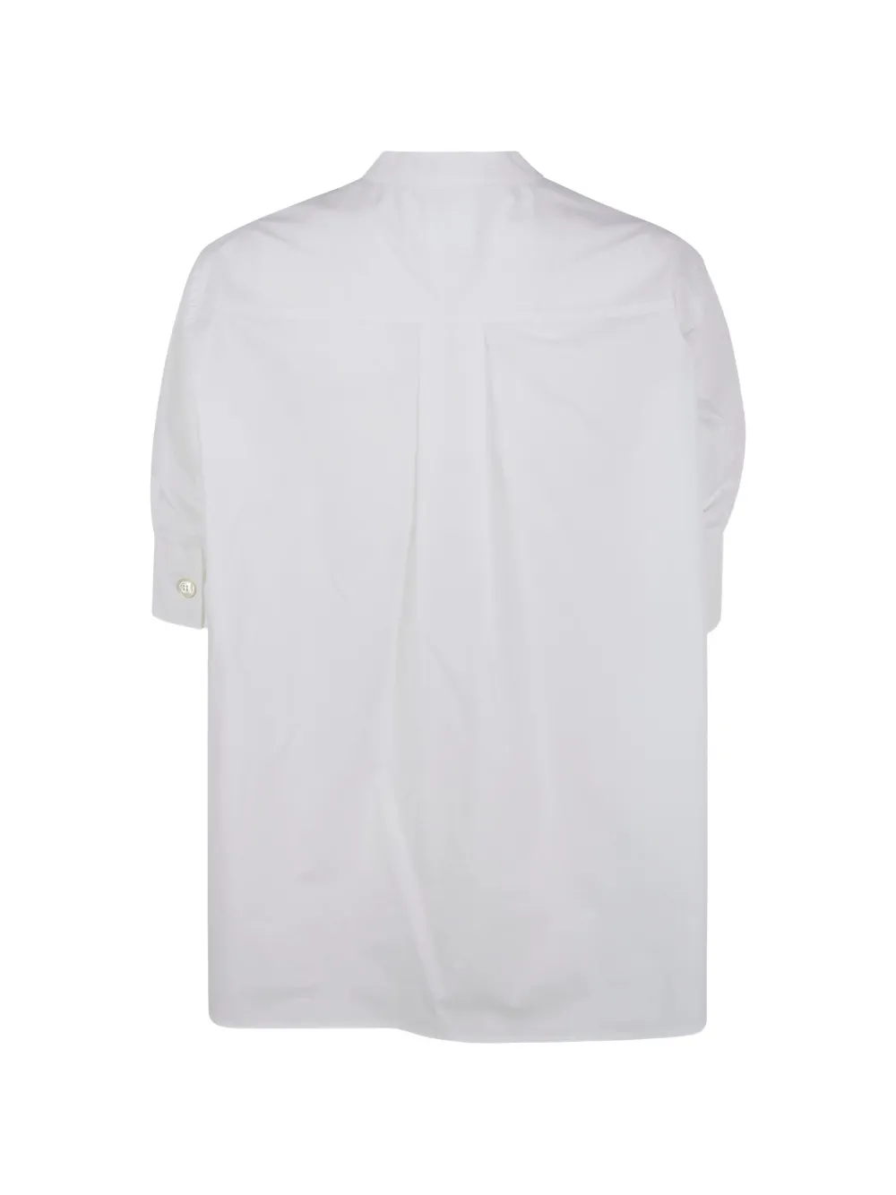 Белая блуза с застежкой на пуговицы, V-образным вырезом, короткими рукавами, складкой сзади и свободным кроем