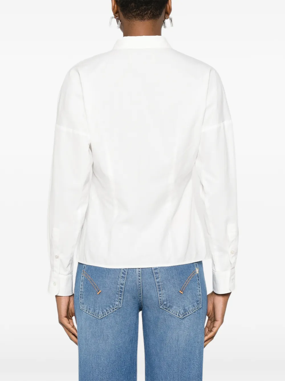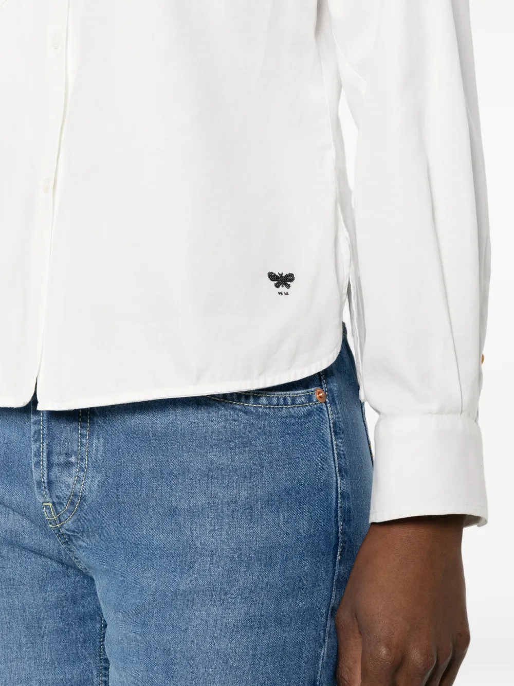 Белая рубашка с нагрудными клапанами, длинными рукавами, застежкой на пуговицы, прямого кроя, с логотипом