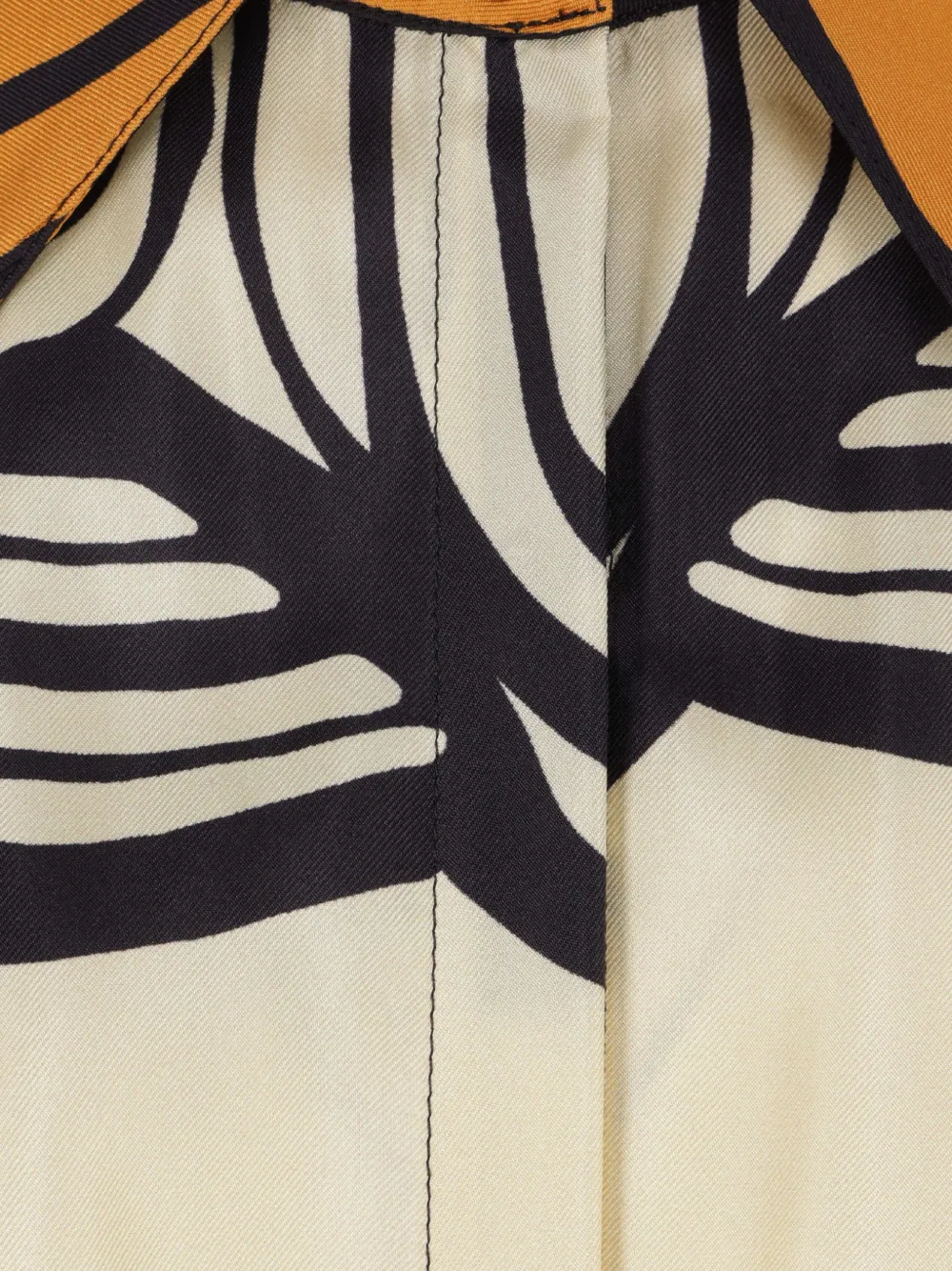 Бежевый разноцветный с узором, застежка на пуговицы спереди, длинные рукава, манжеты на пуговицах, шелк