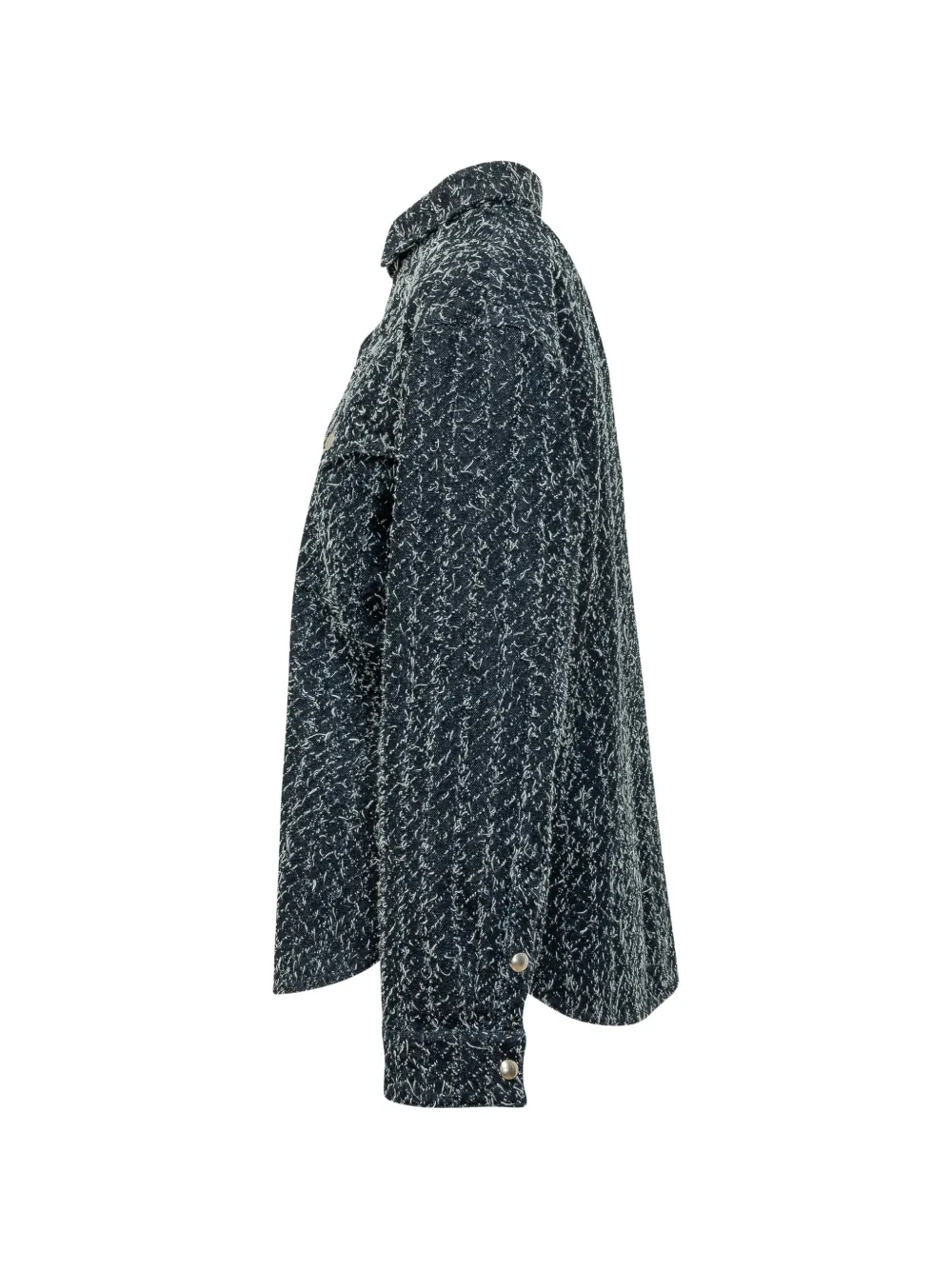 Синий и белый, фурнитура под серебро, нагрудные карманы, застежка на пуговицы, узор по всей поверхности